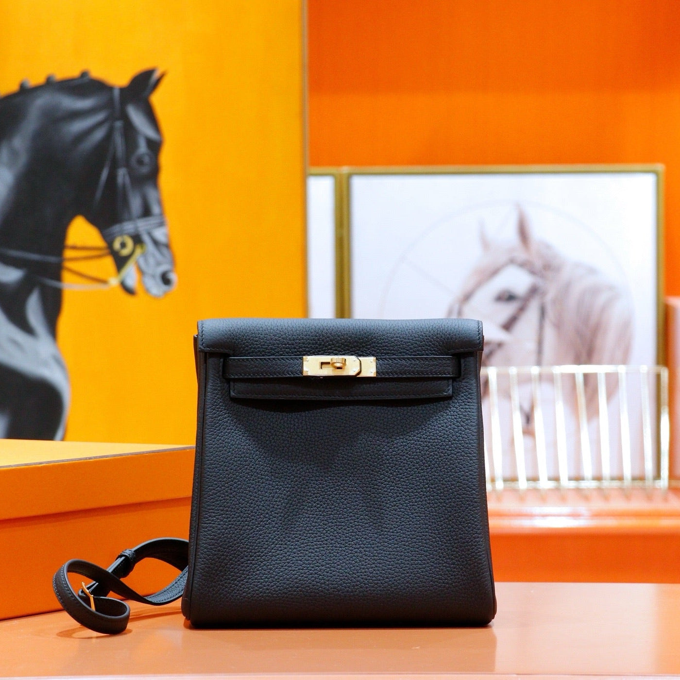 HM Kelly Jump Backpack Black Cowhide Gold Hardware 270044