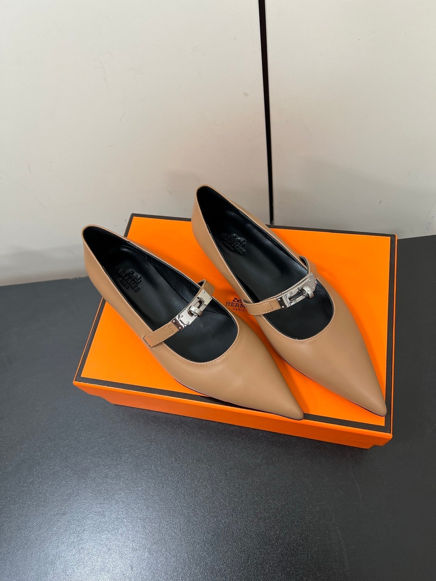 HM 25C Kelly Ballet Flat Ash Brown Calfskin 210298