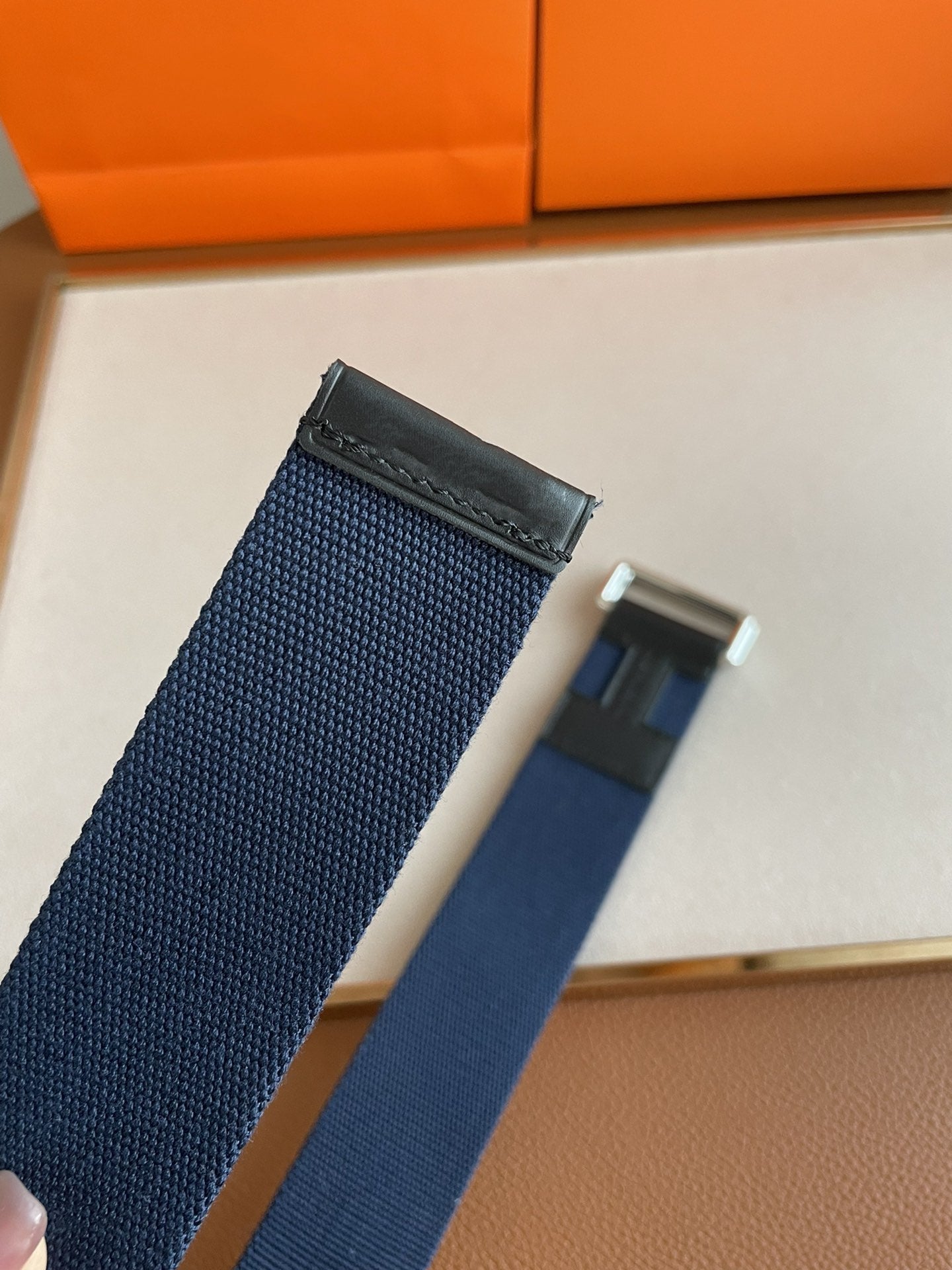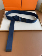 4.0CM BLUE TEXTILE BLACK LEATHER H BELT