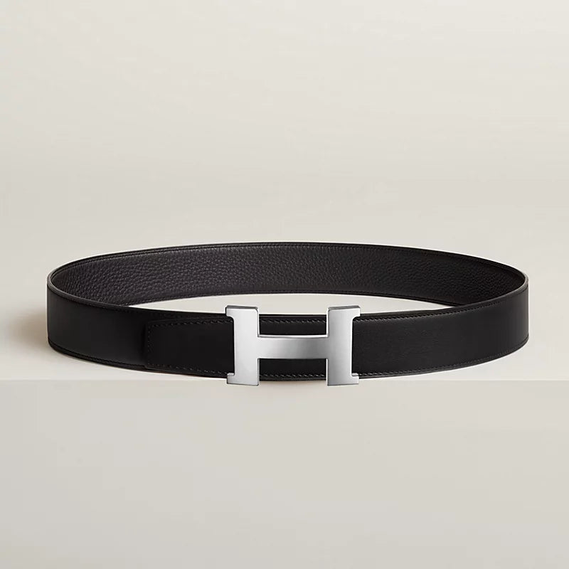 Constance belt buckle & Reversible leather strap 38 mm Black Silver Calfskin