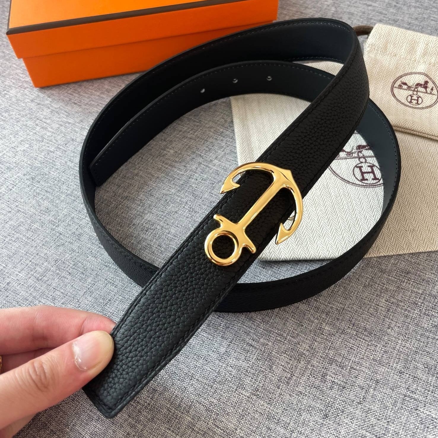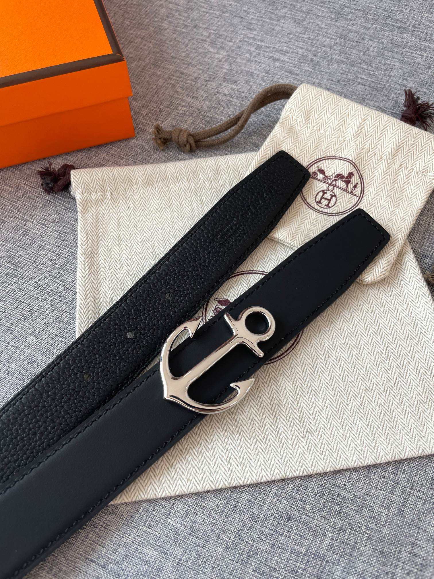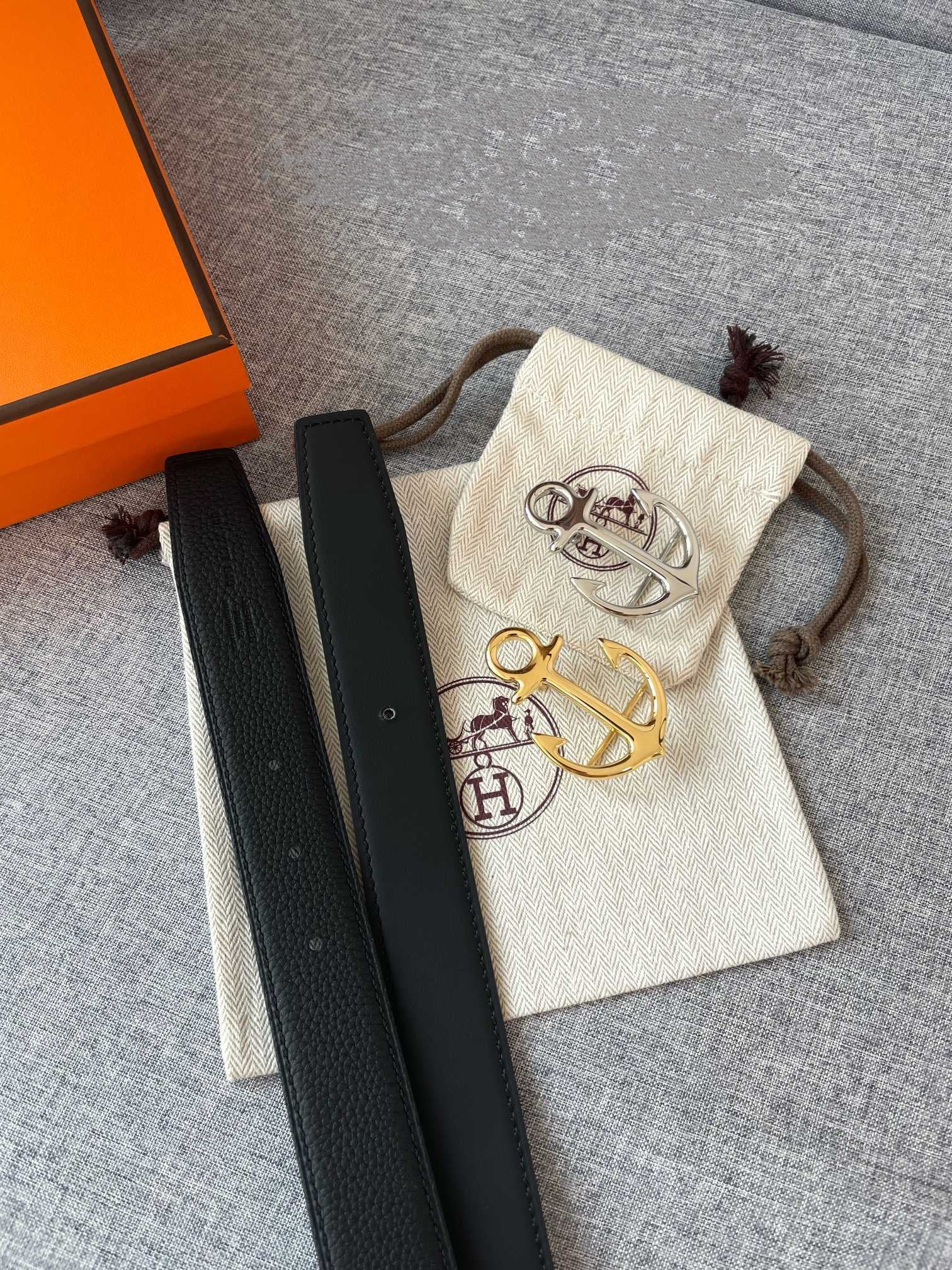 • H Buckle in permabrass plated metal.