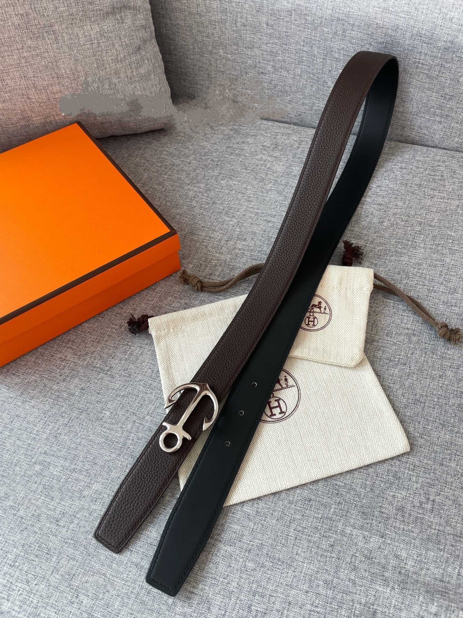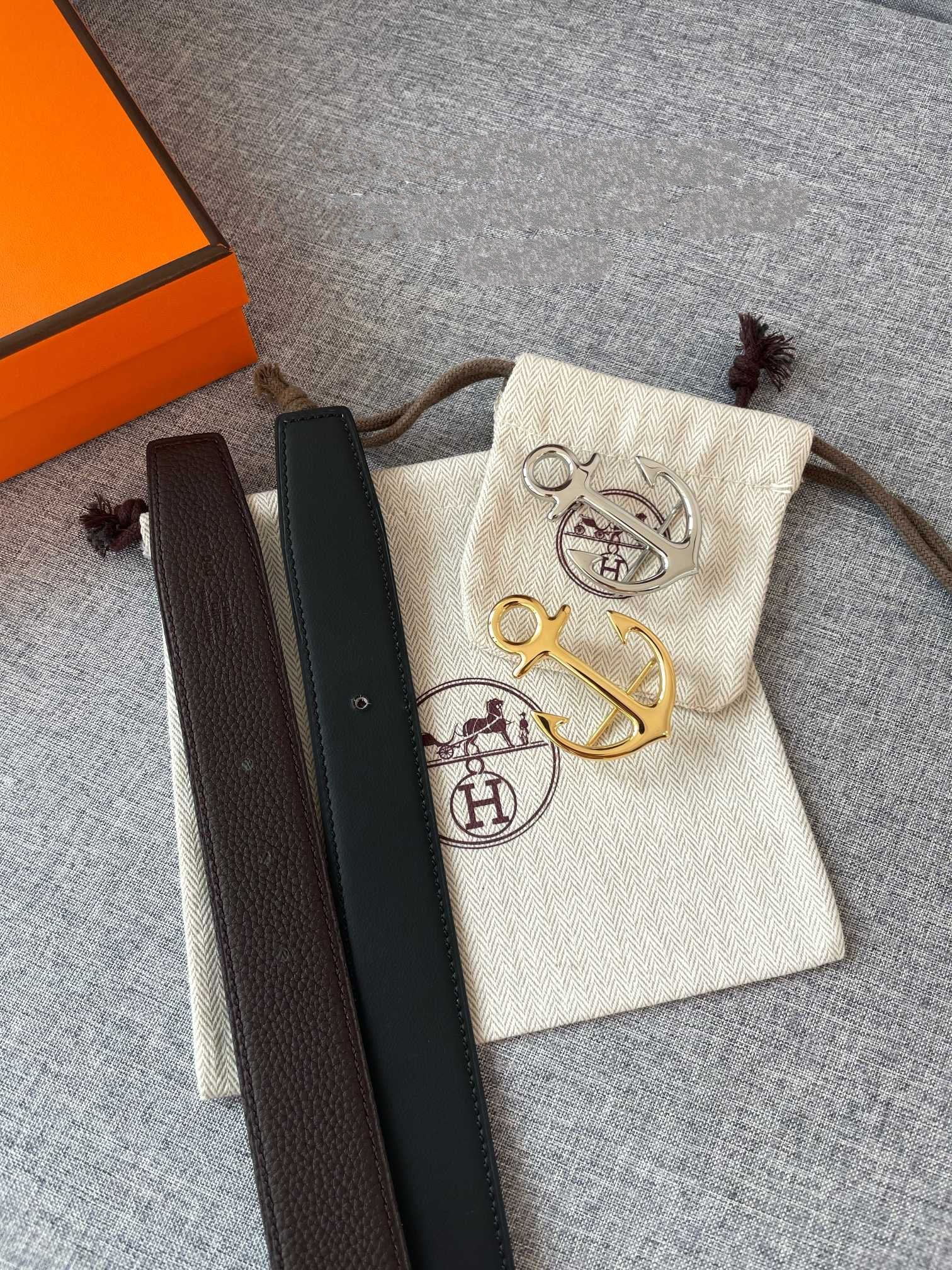• H Buckle in permabrass plated metal.