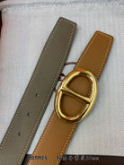 H TWIN REVERSIBLE BELT 32MM GOLD BUCKLE GREEN GREY GOLD LEATHER