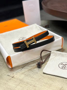 HM FOCUS BUCKLE & REVERSIBLE BLACK AND ORANGE LEATHER STRAP 13MM GOLD HARDWARE