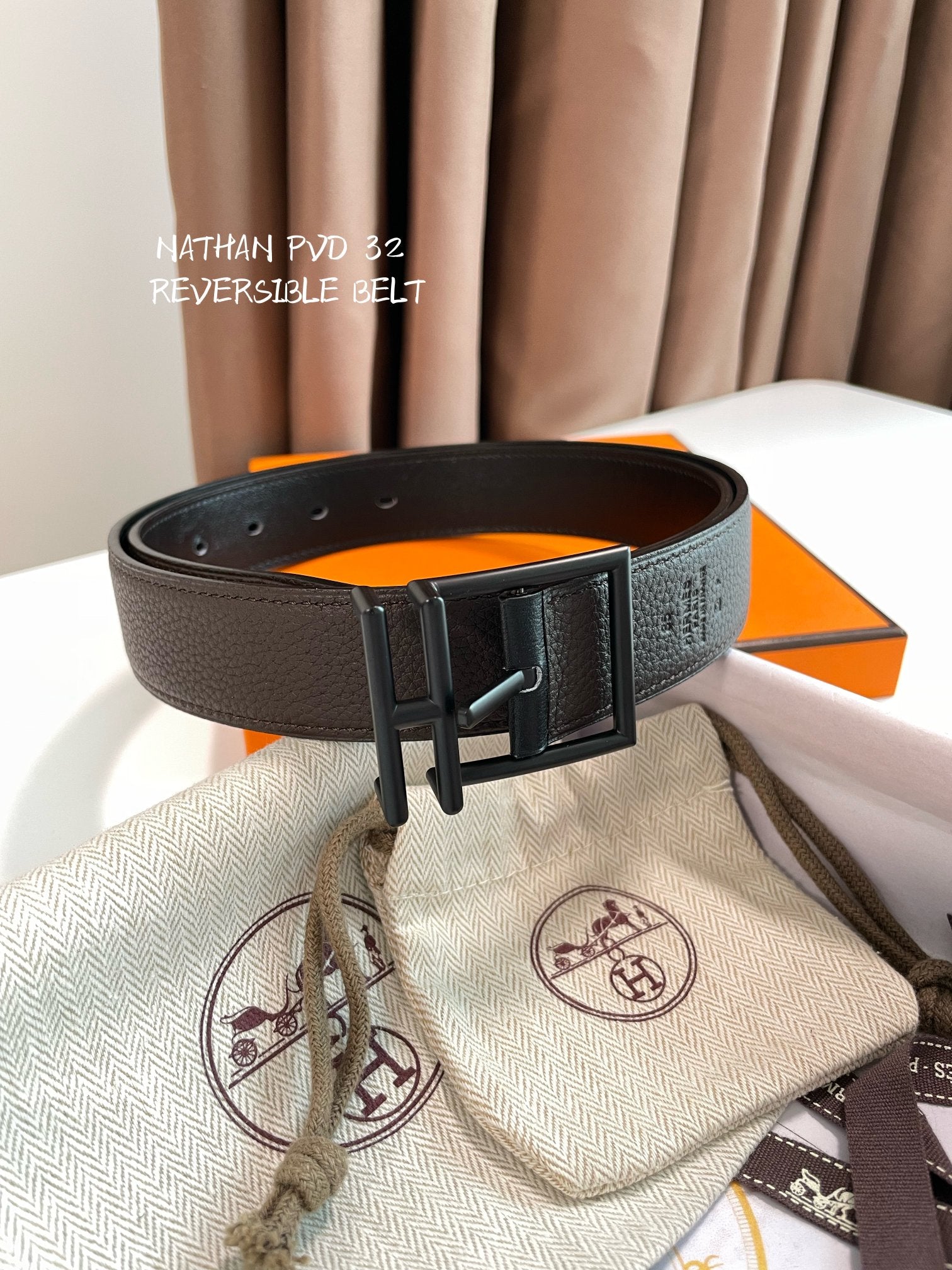 HM Nathan 32mm Belt Black Chocolate Leather 187798