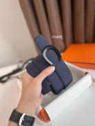 LUCK BELT BUCKLE & REVERSIBLE AEGEAN BLUE AND BLACK LEATHER STRAP 38MM BLACK HARDWARE