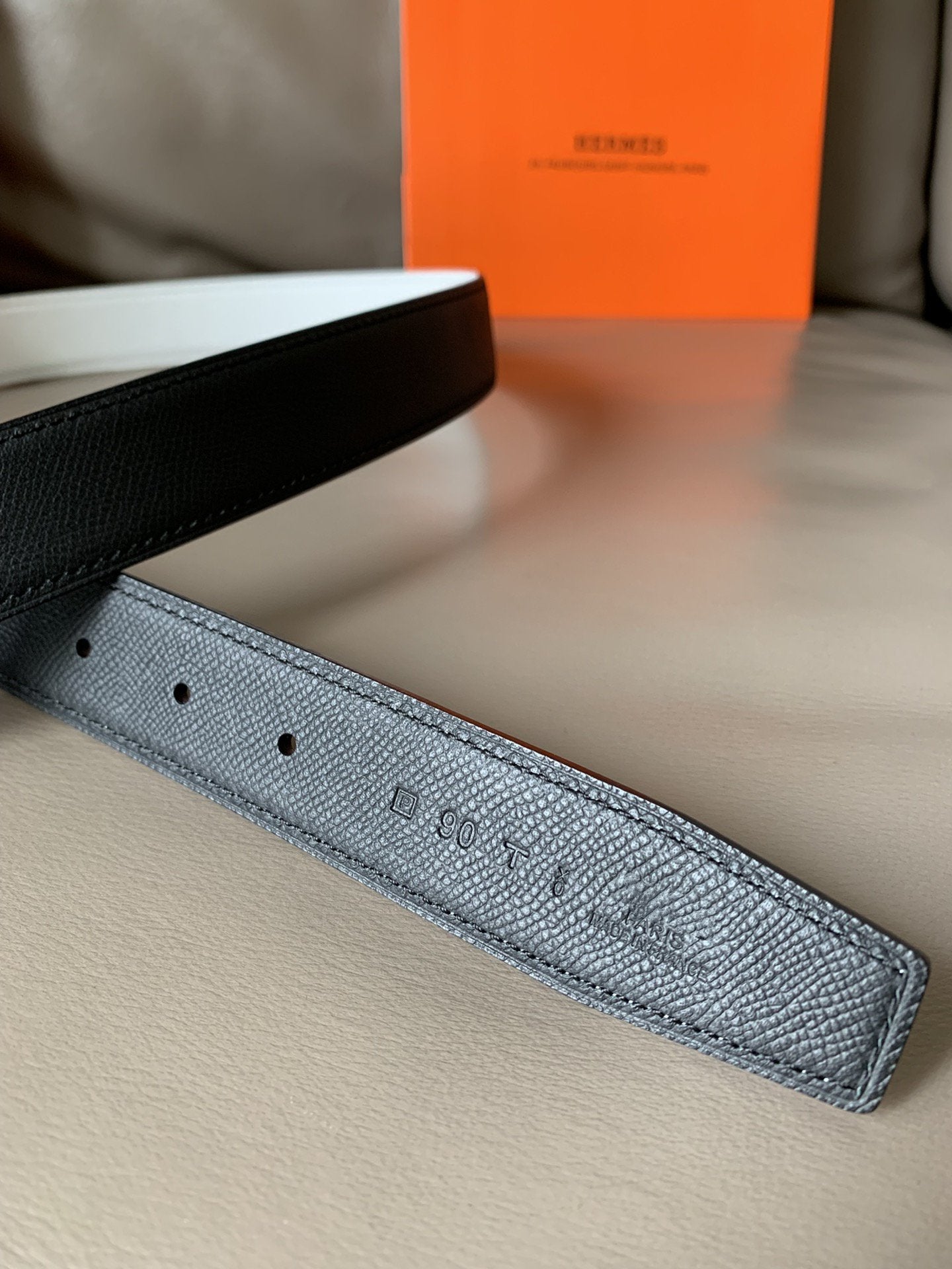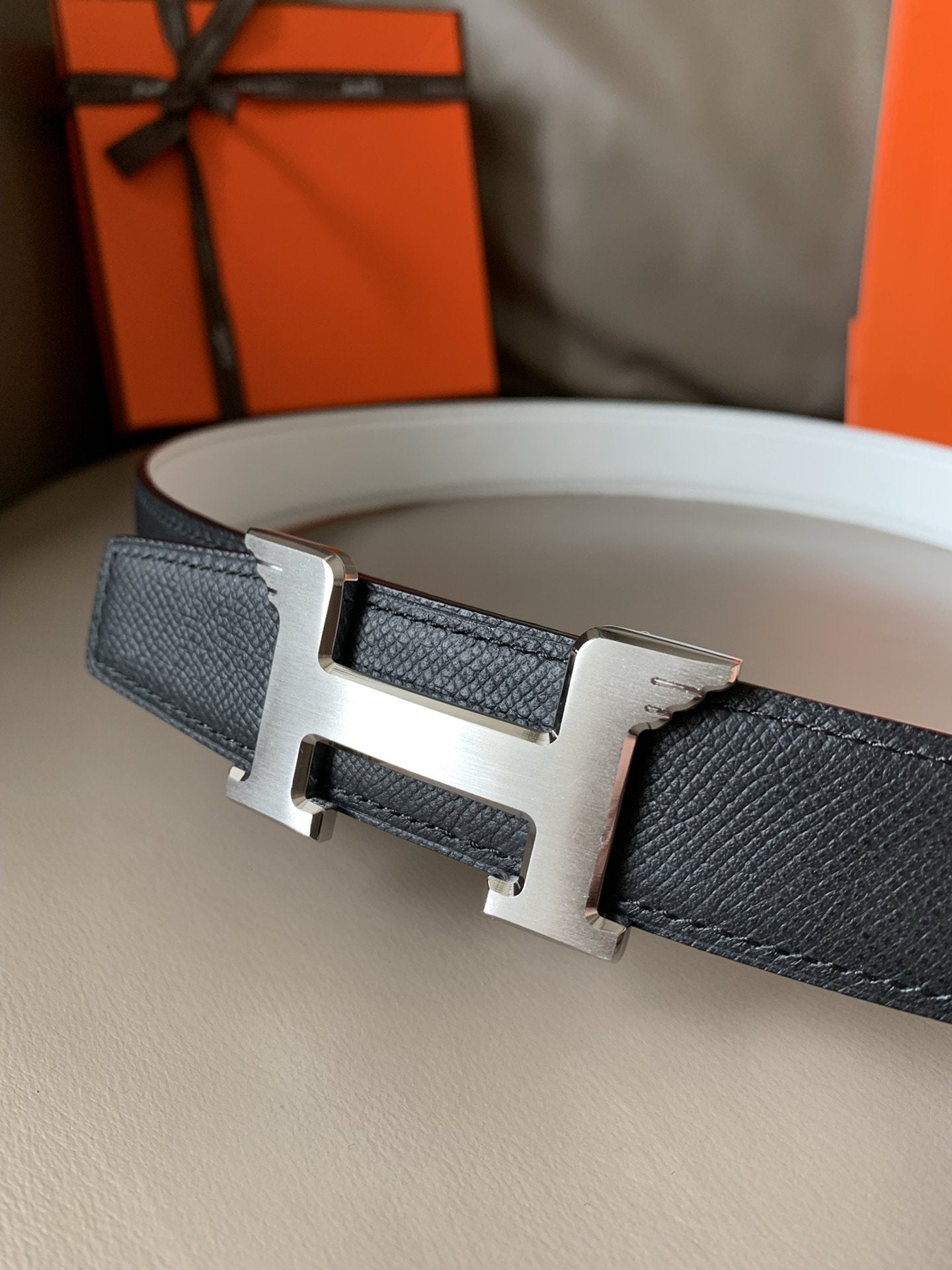 • H Buckle in permabrass plated metal.