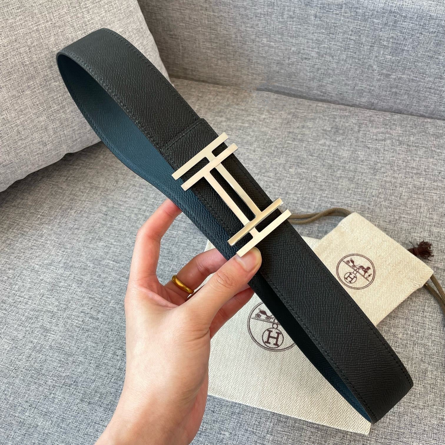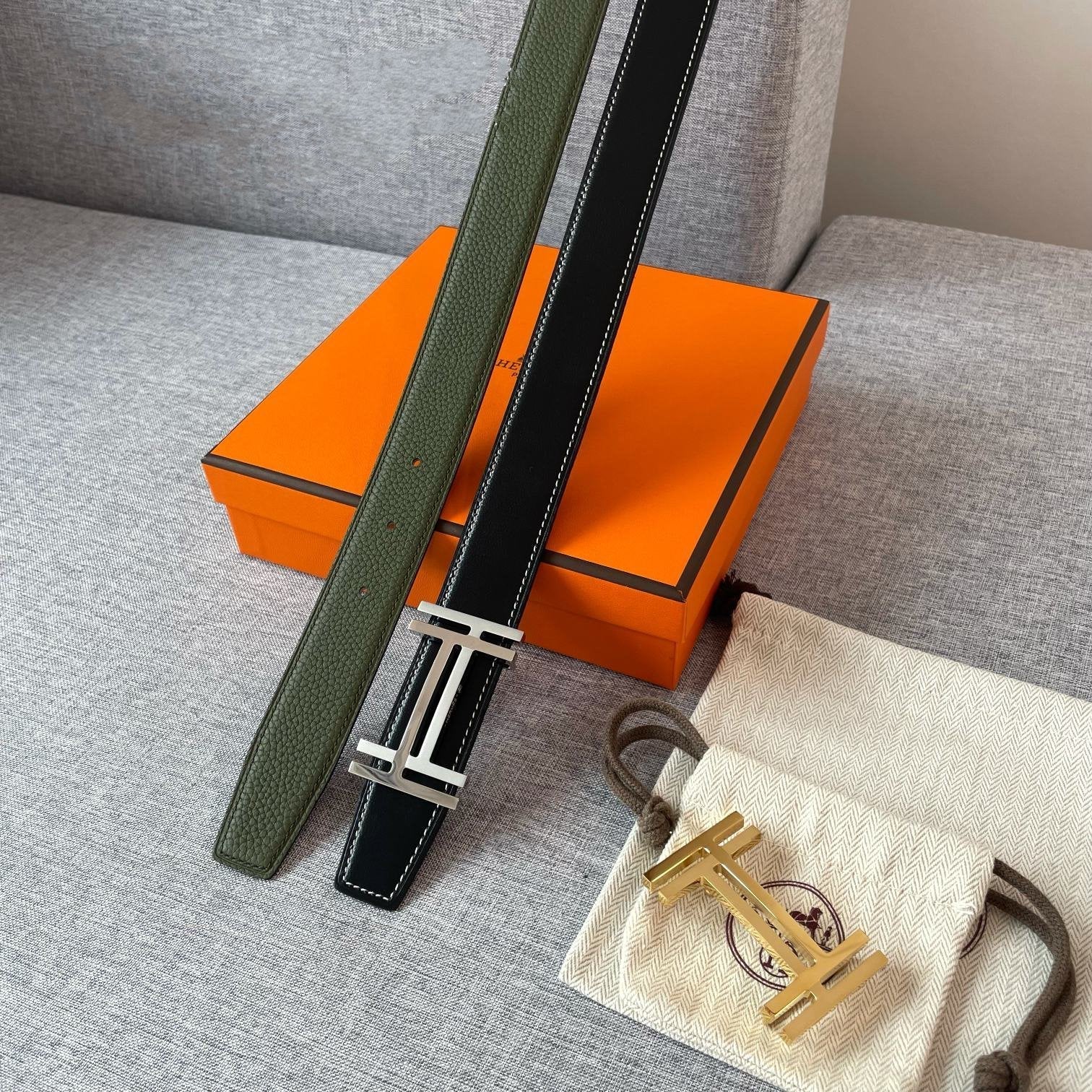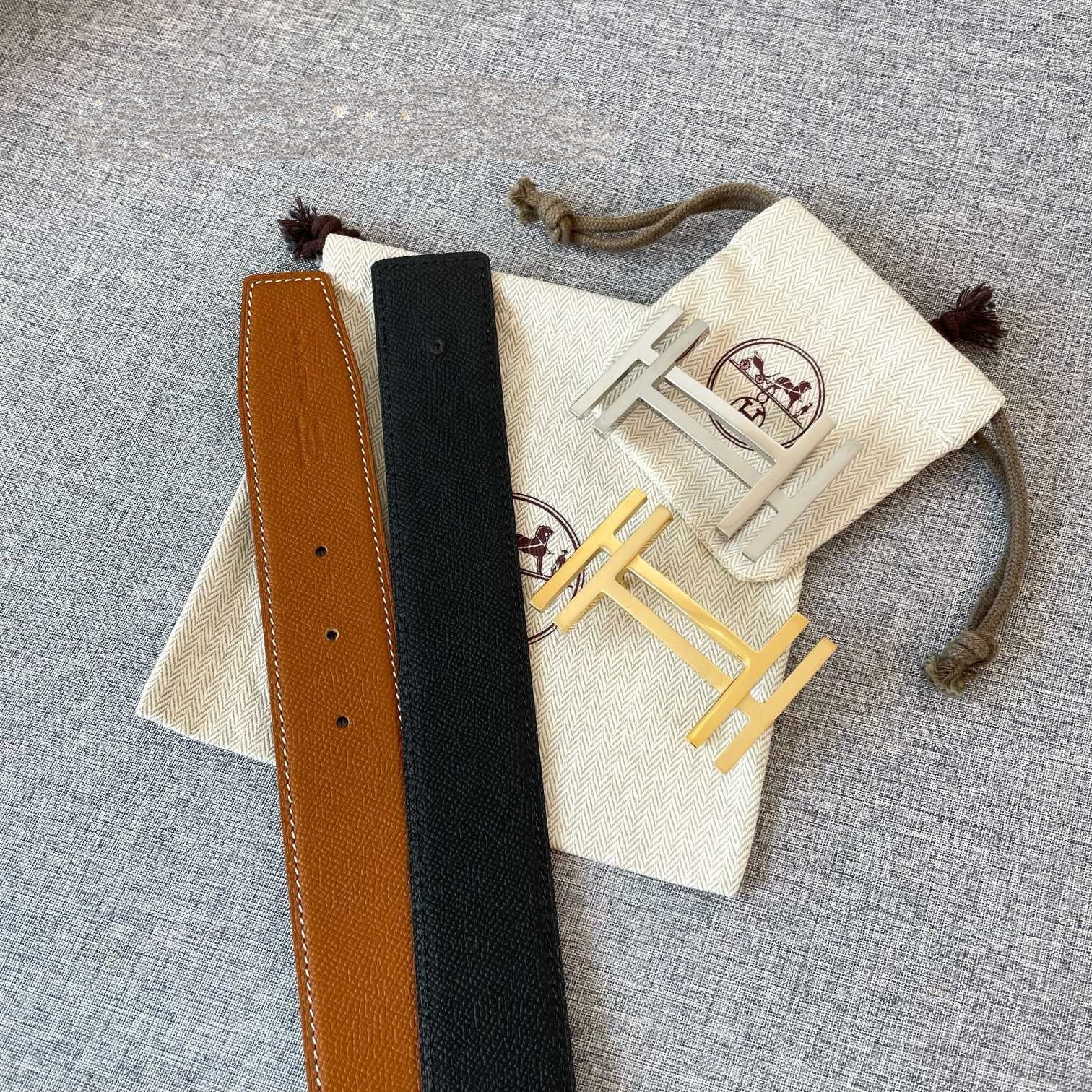 H BELT GOLD BUCKLE BROWN BLACK LEATHER RIVERSIBLE 3.8CM