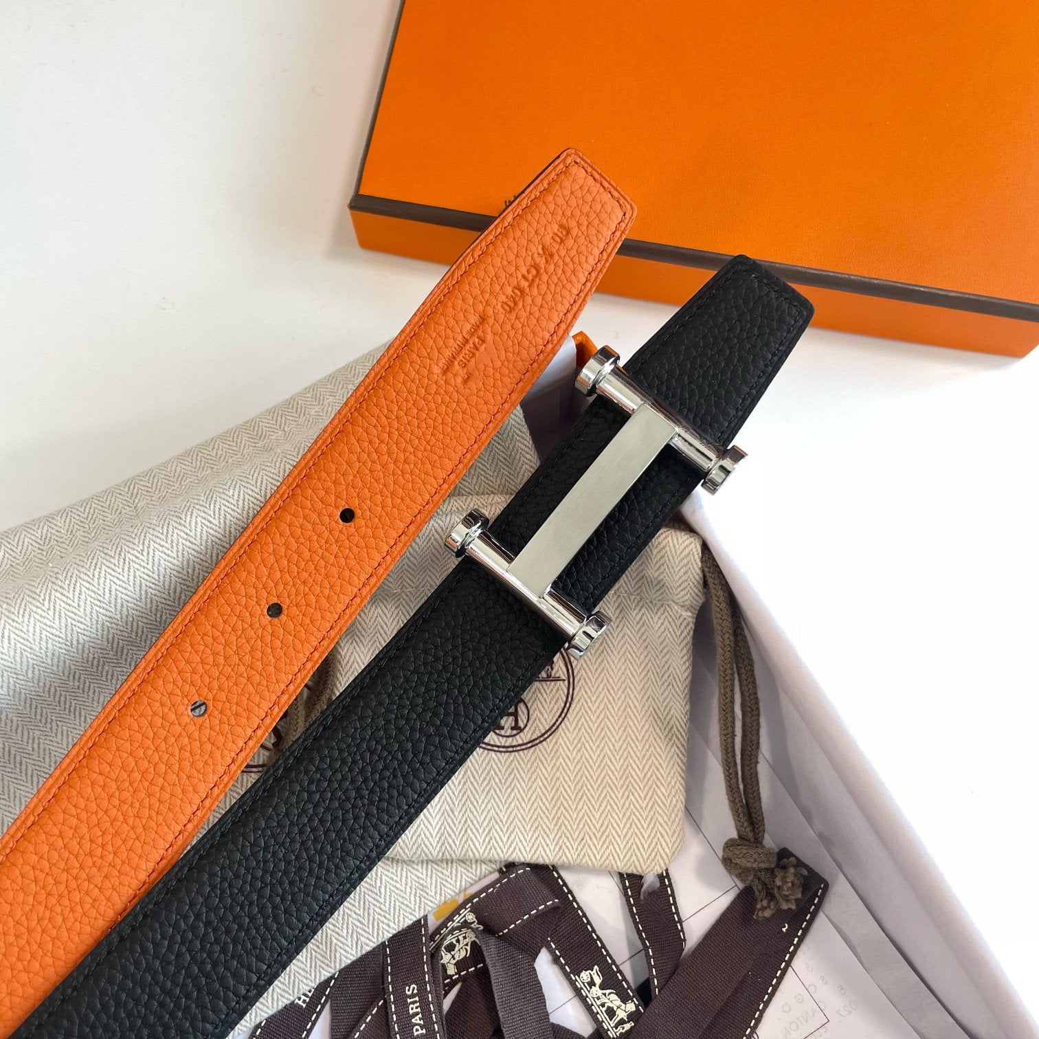 H BELT GOLD BUCKLE 38 MM SMOOTH ORANGE LEATHER REVERSIBLE