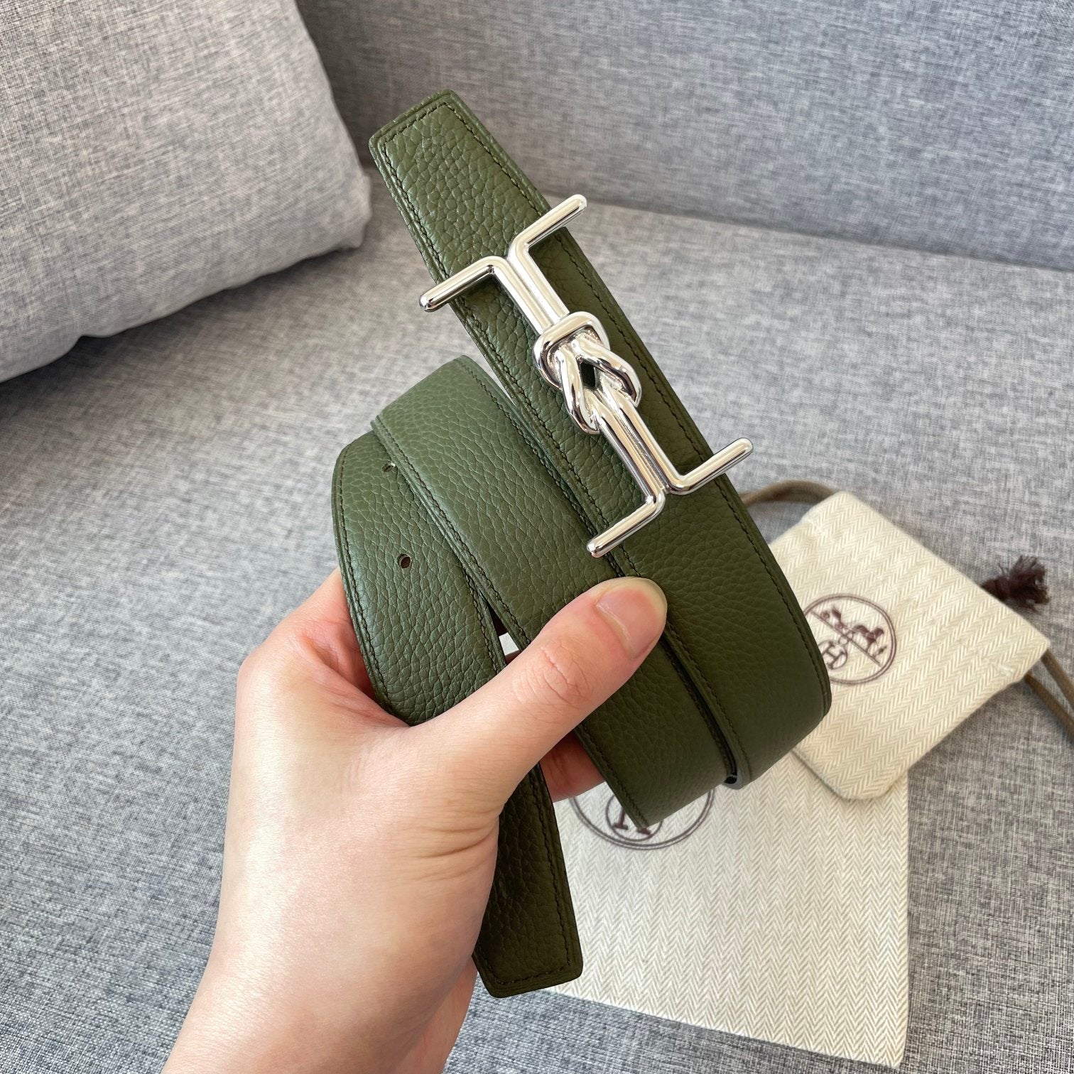H BELT WOMEN SILVER BUCKLE 24MM ROSE RED LEATHER