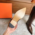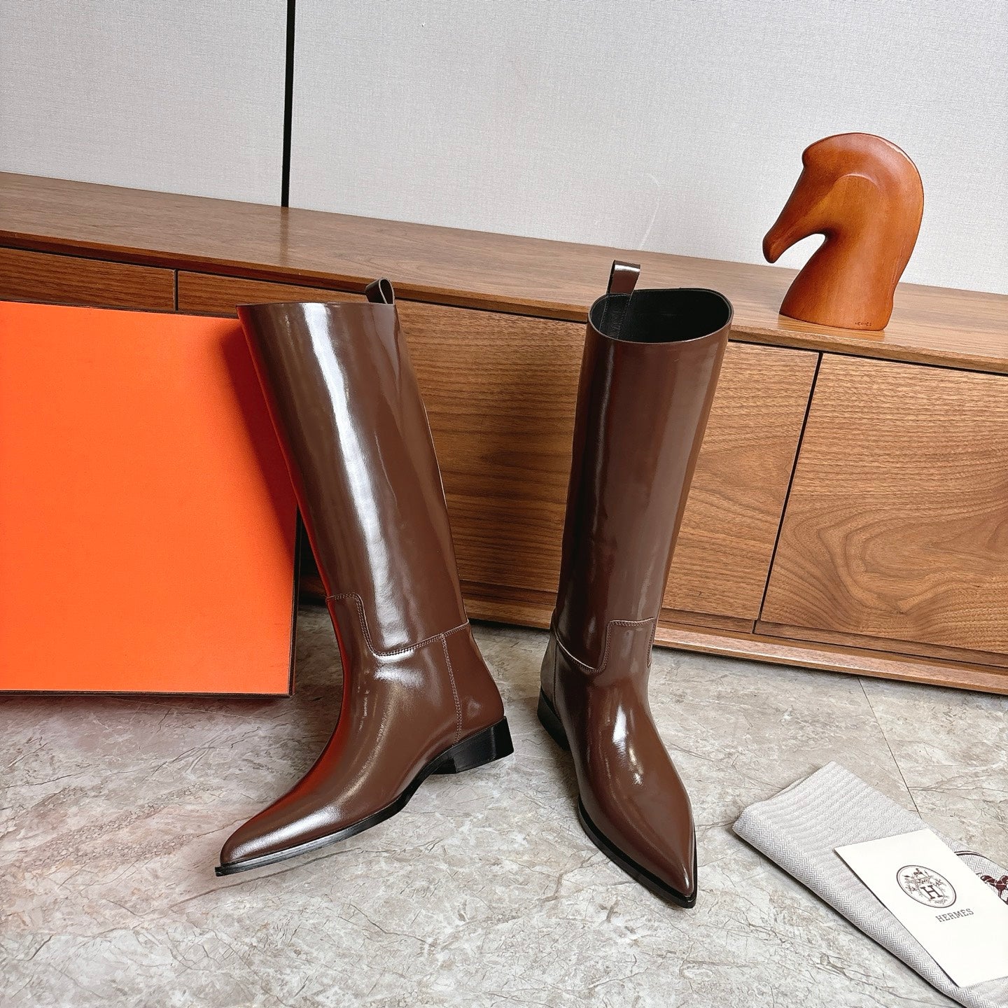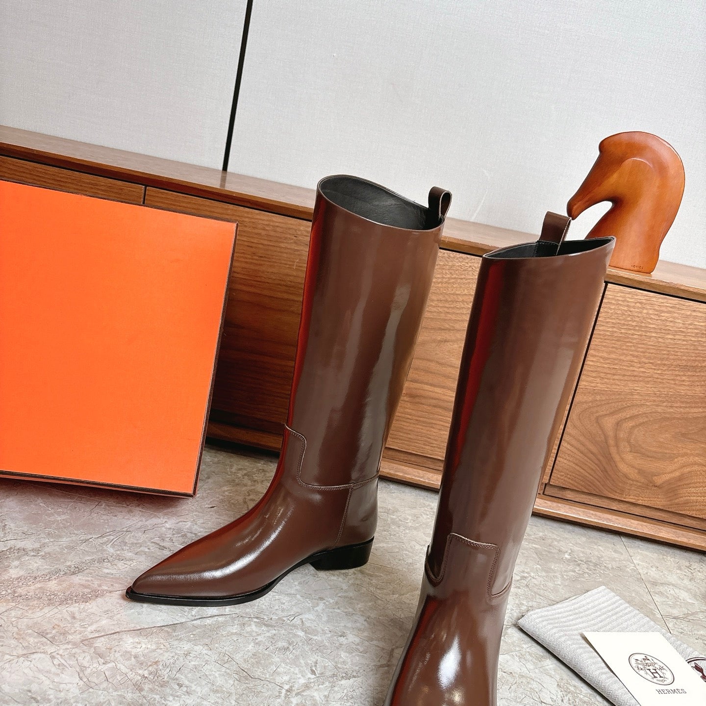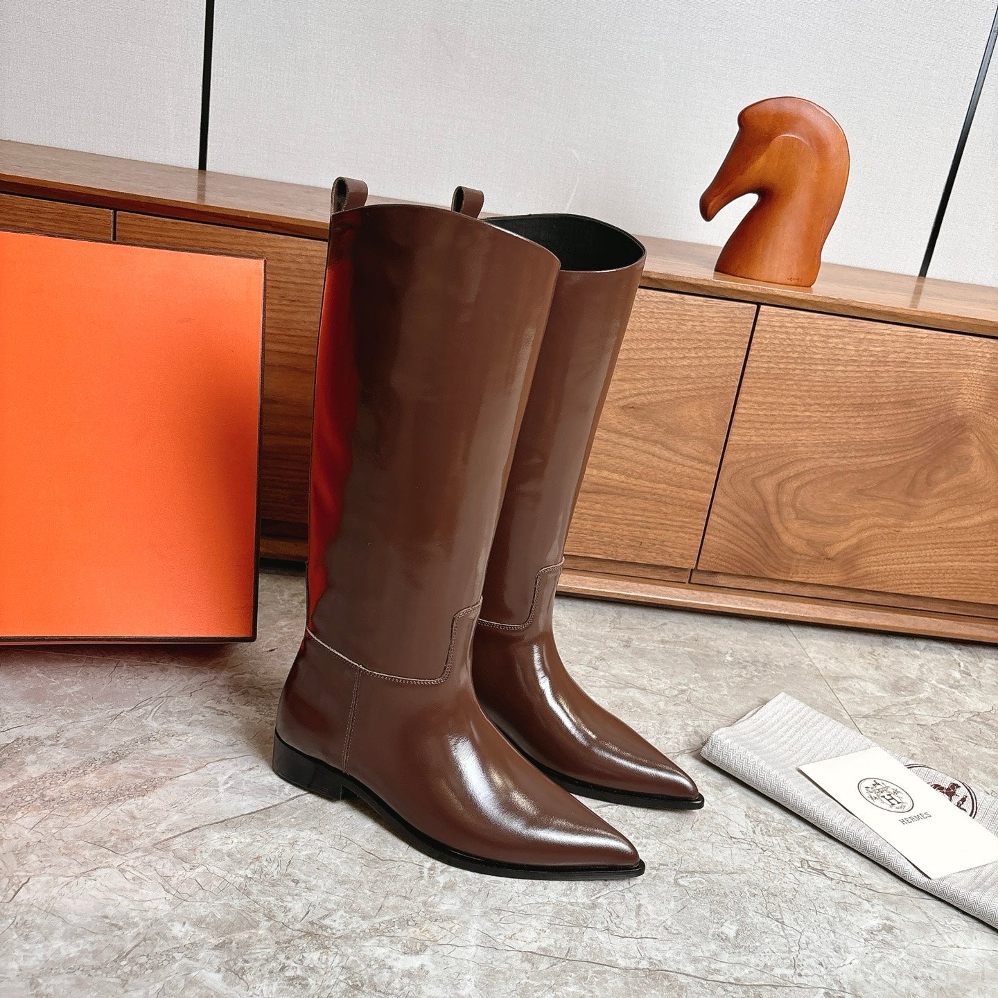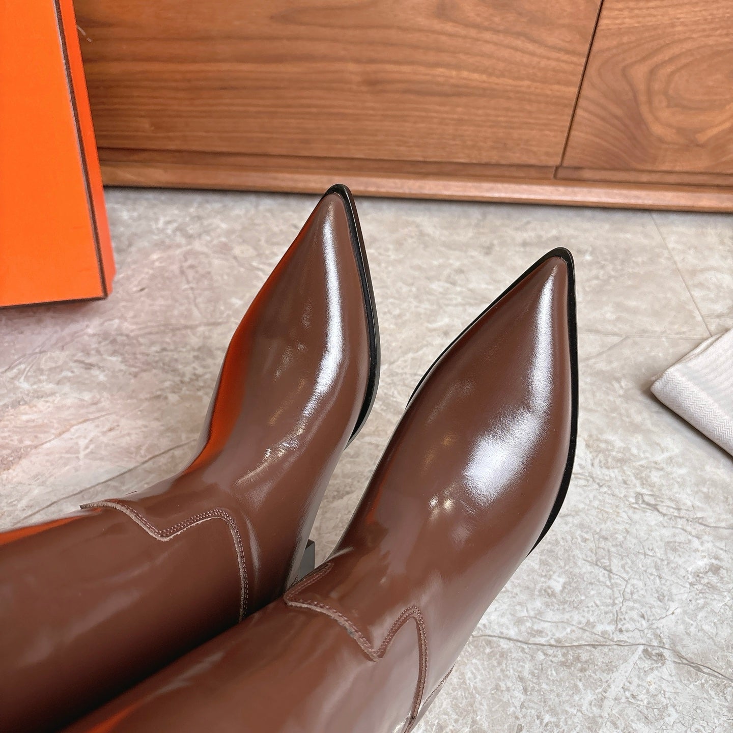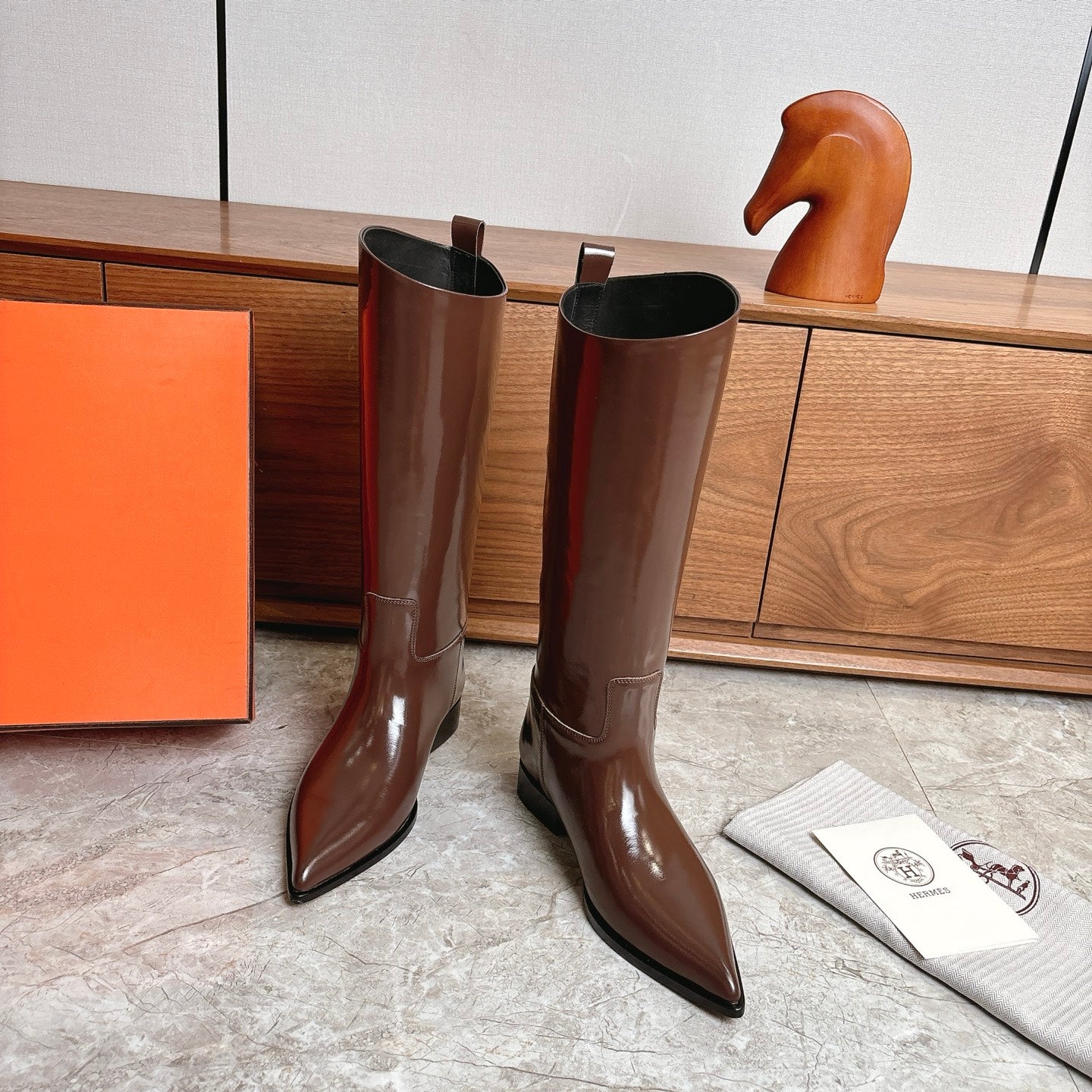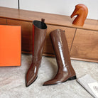 HM FW Pointed-Toe Riding Boots Brown Patent Leather 541260