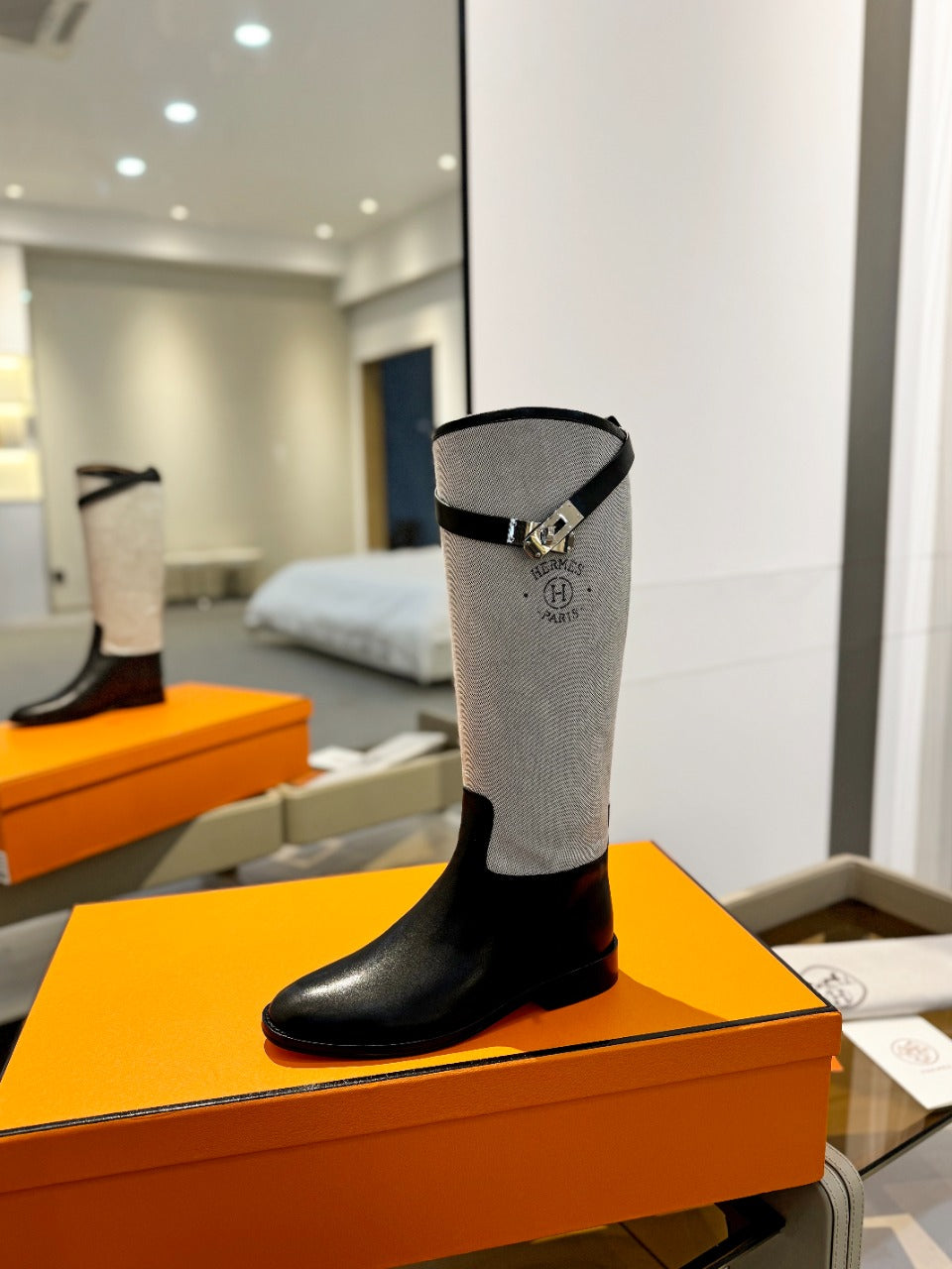 HM Jumping Boot 20mm Black Mix Grey White Cowhide And Tech Fabric 961653