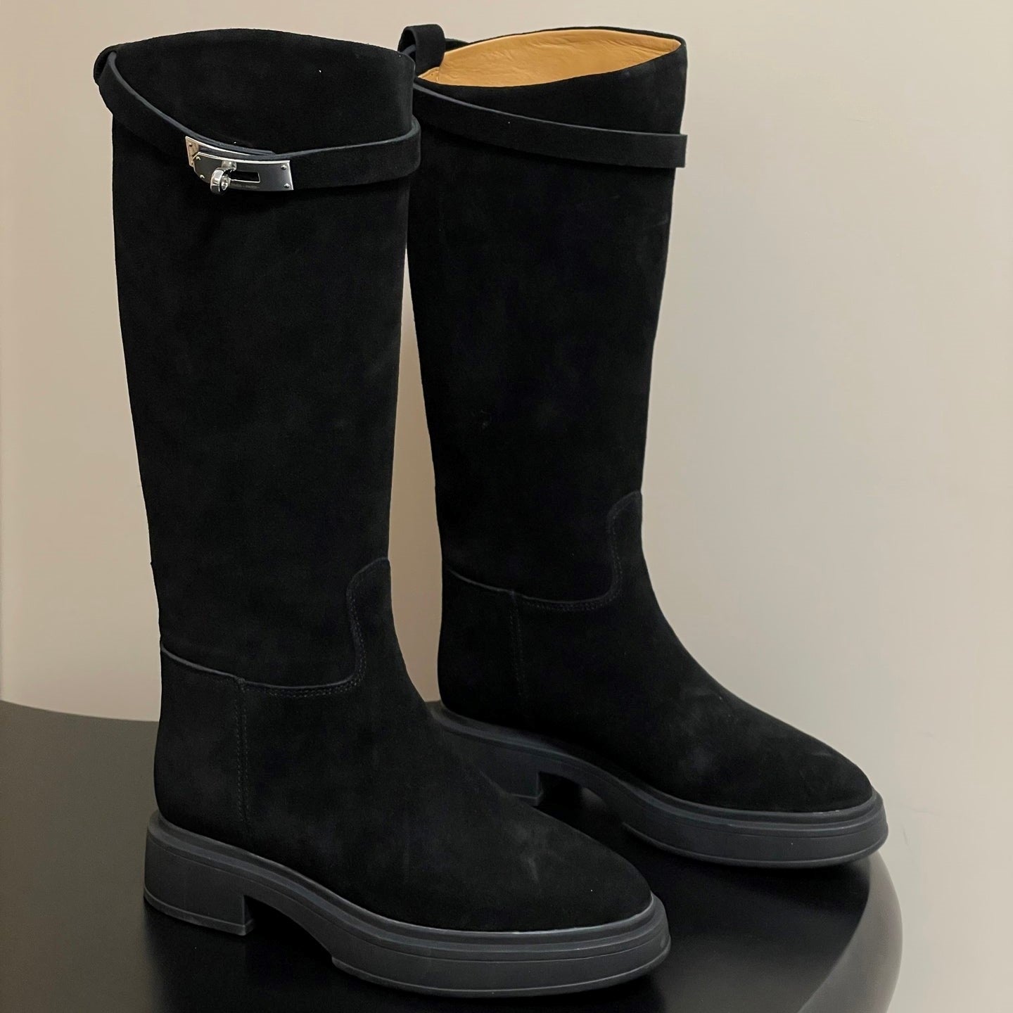 HM Jumping Boots Black Kelly Buckle Suede 423267