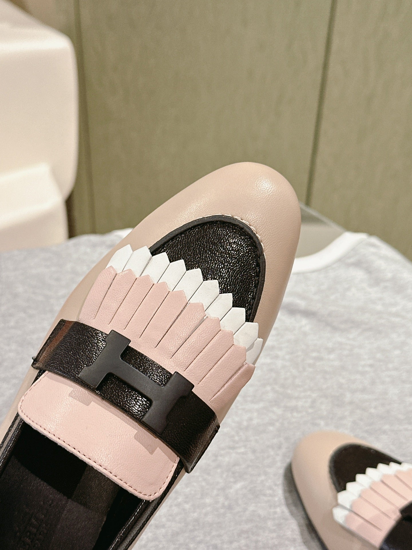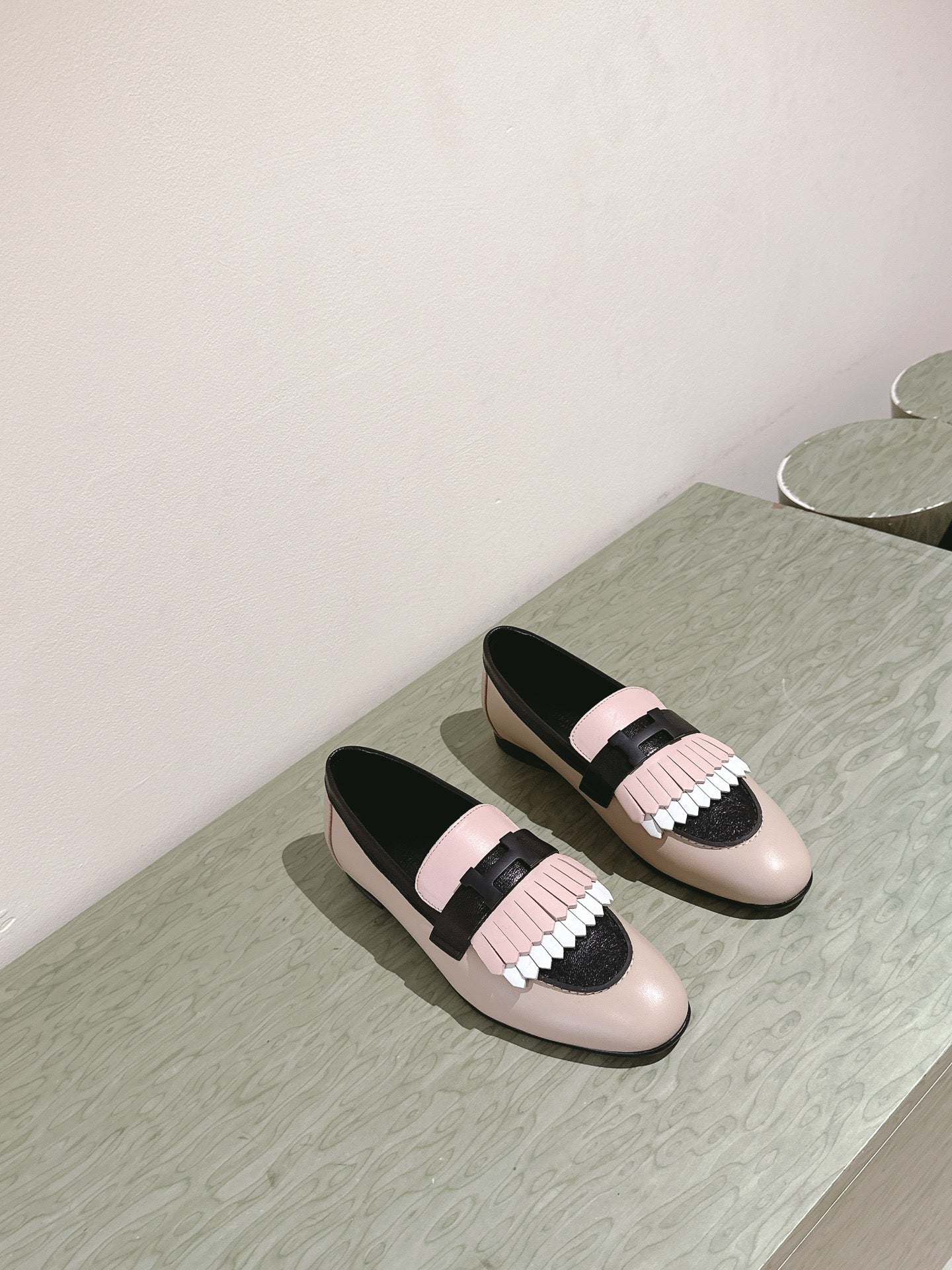 HM Mocassins Royal Loafers Black Beige Sheepskin 445009