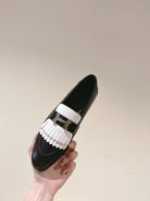 HM Mocassins Royal Loafers Black White Sheepskin 445007
