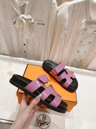 CHYPRE SANDAL BLACK AND LAVENDER LAMBSKIN