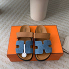 chypre sandal blue denim brown calfskin