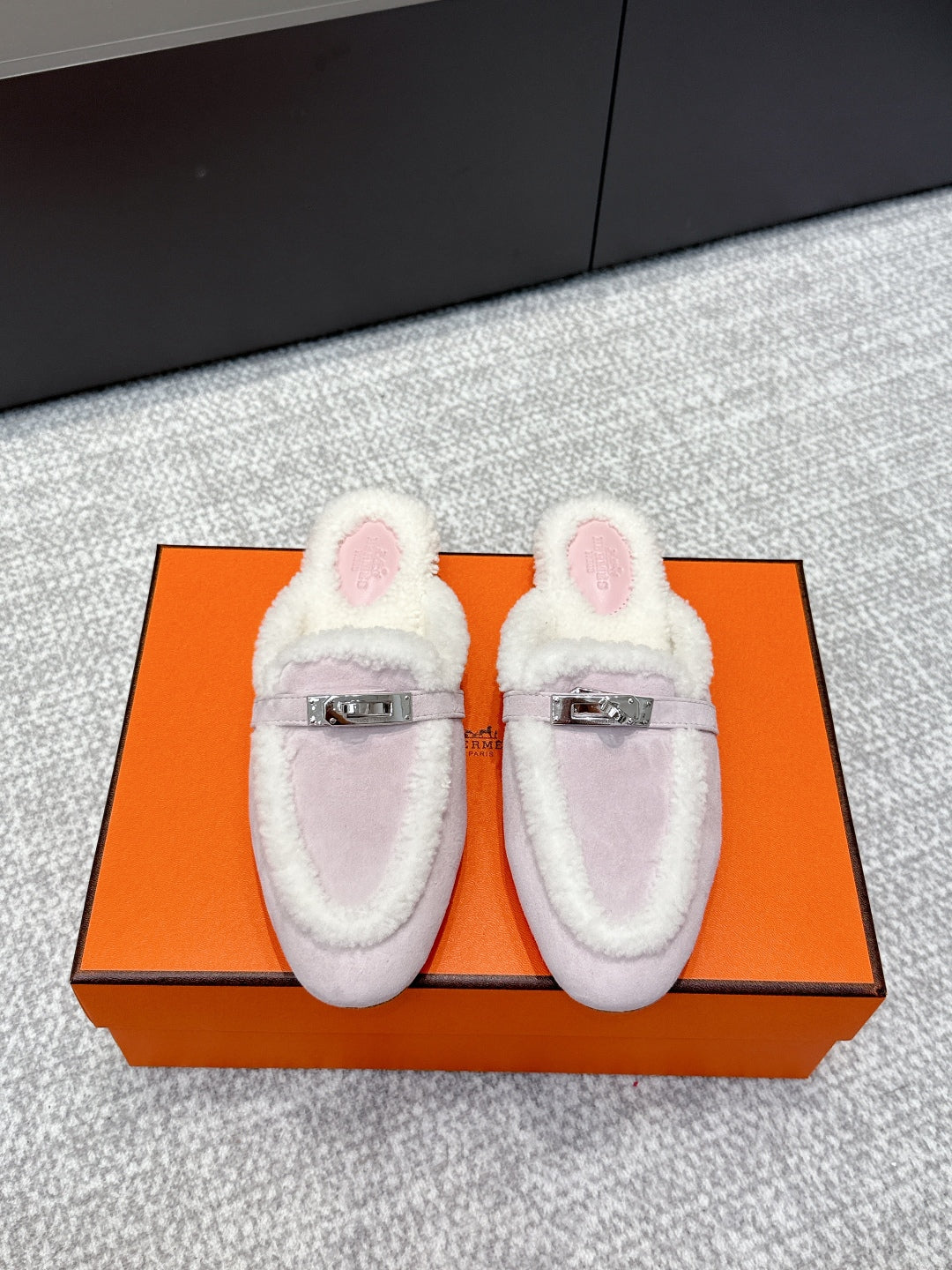 HM 25ss Oz Mule Light Rose Suede And Shearling 461938