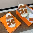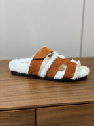 HM Chypre Sandal In Brown Orange Mix White Fleece And Suede 984198