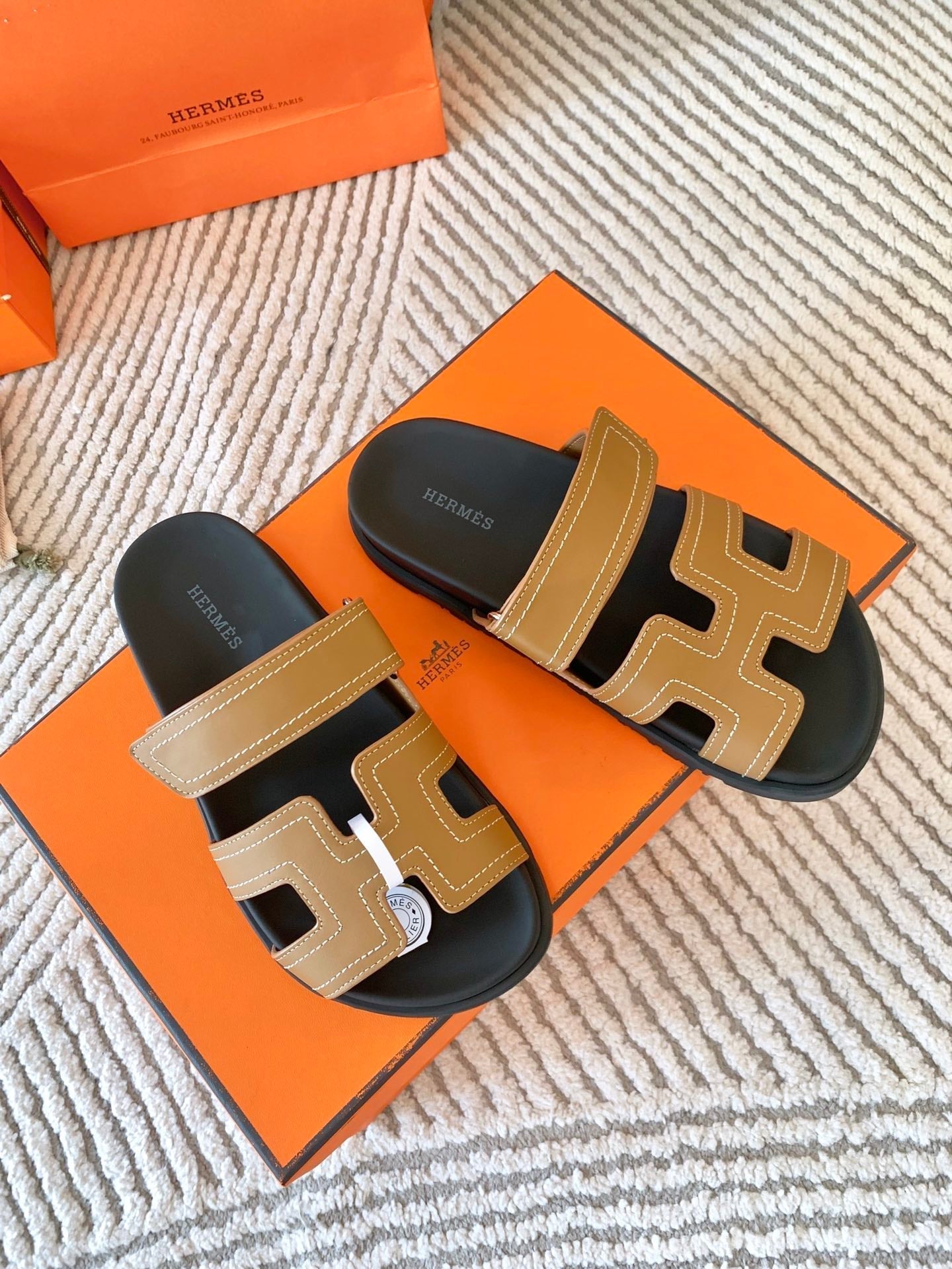 HM Chypre Sandal Lumpy Brown With White Stitching Lambskin 963495