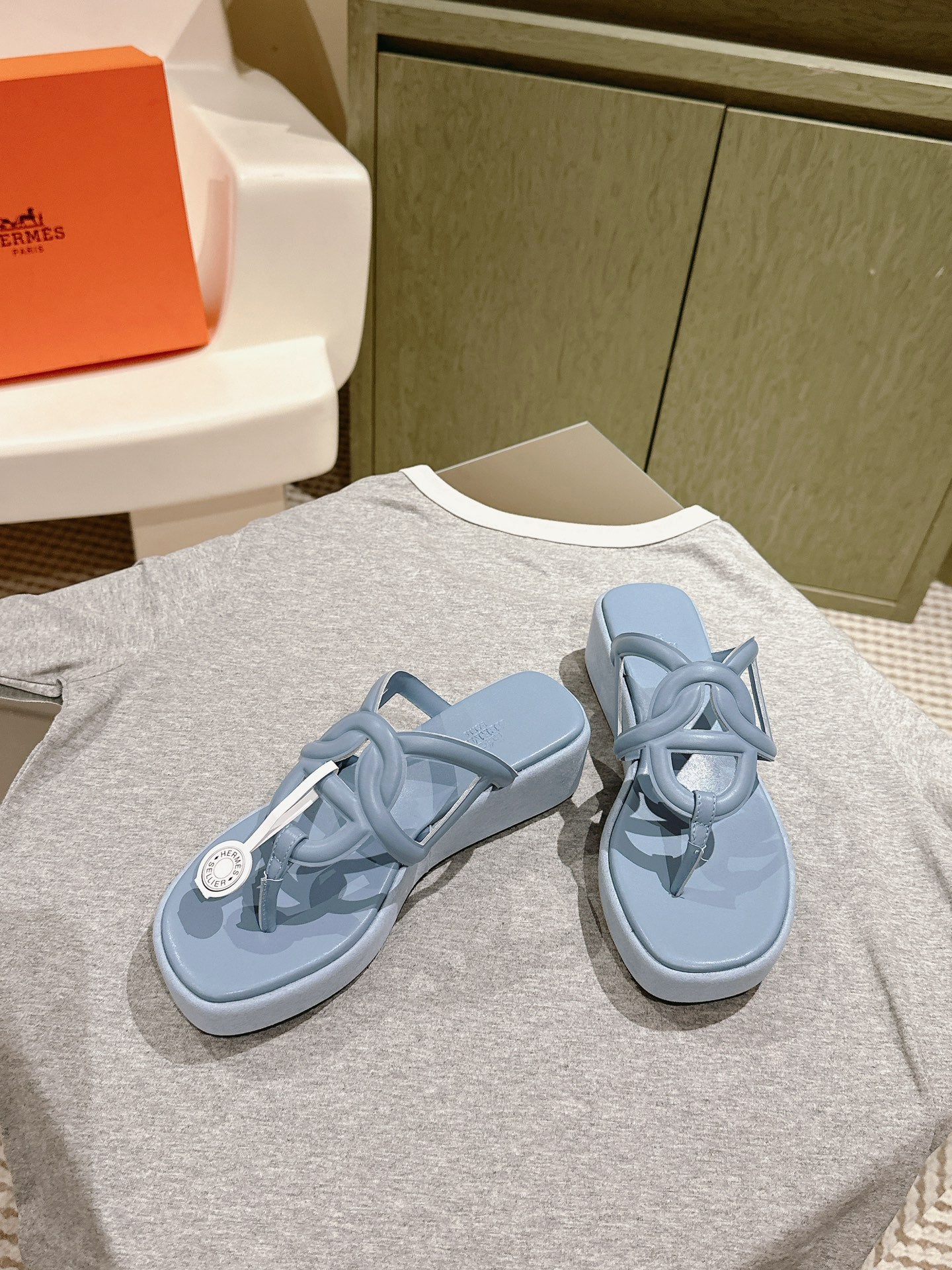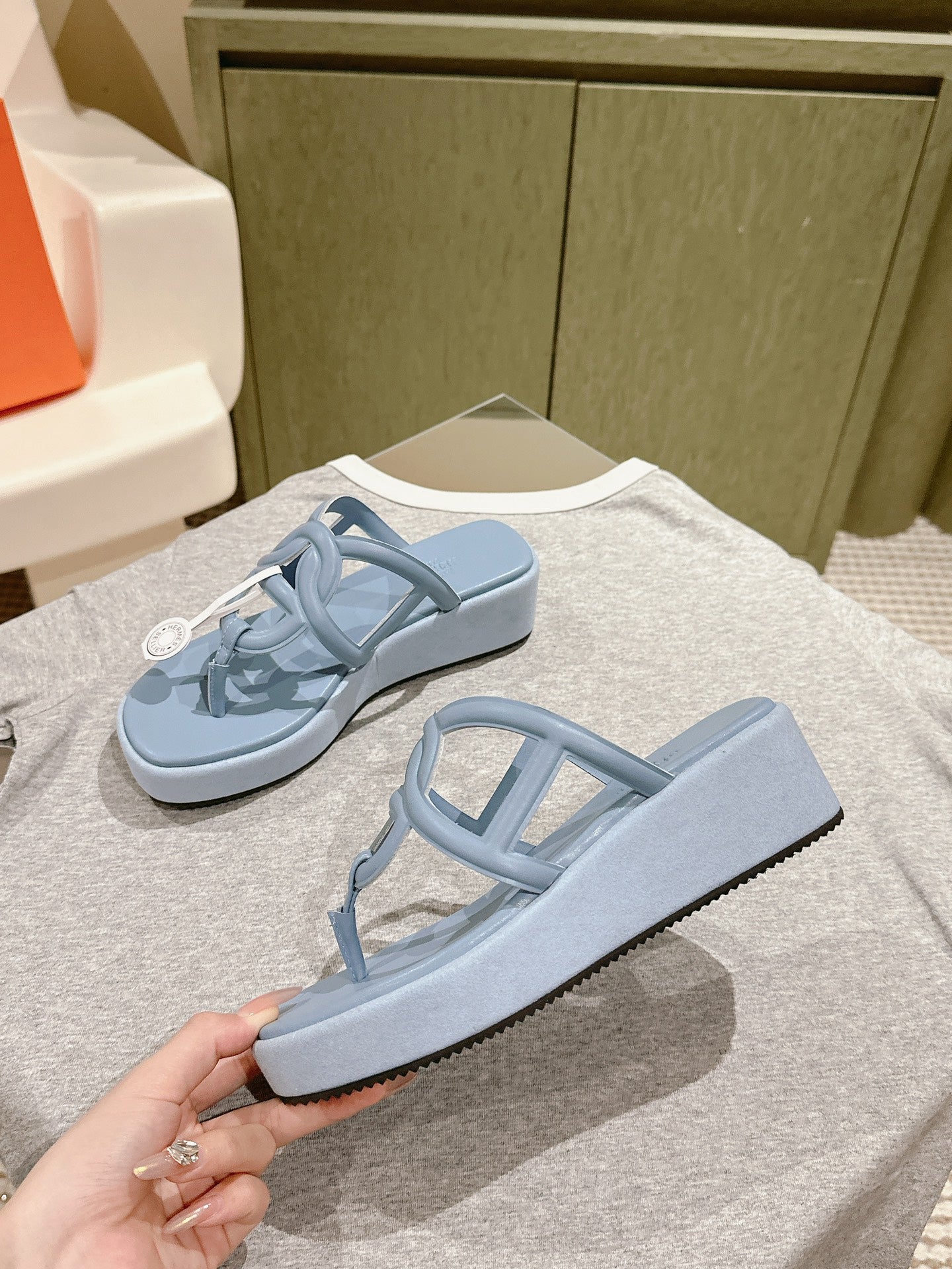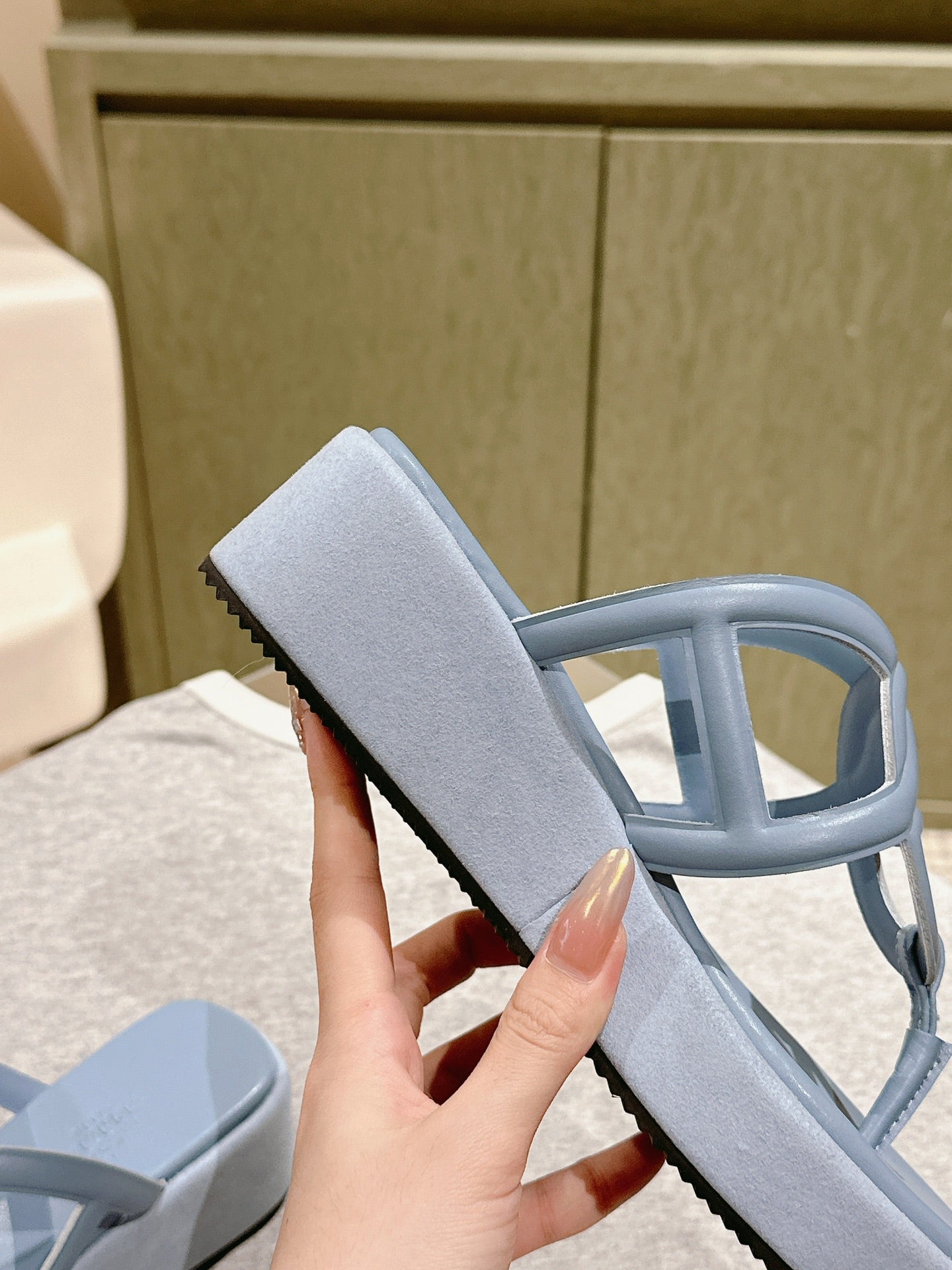 HM Gipsy  Sandals 50mm Light Blue Sheepskin 484754