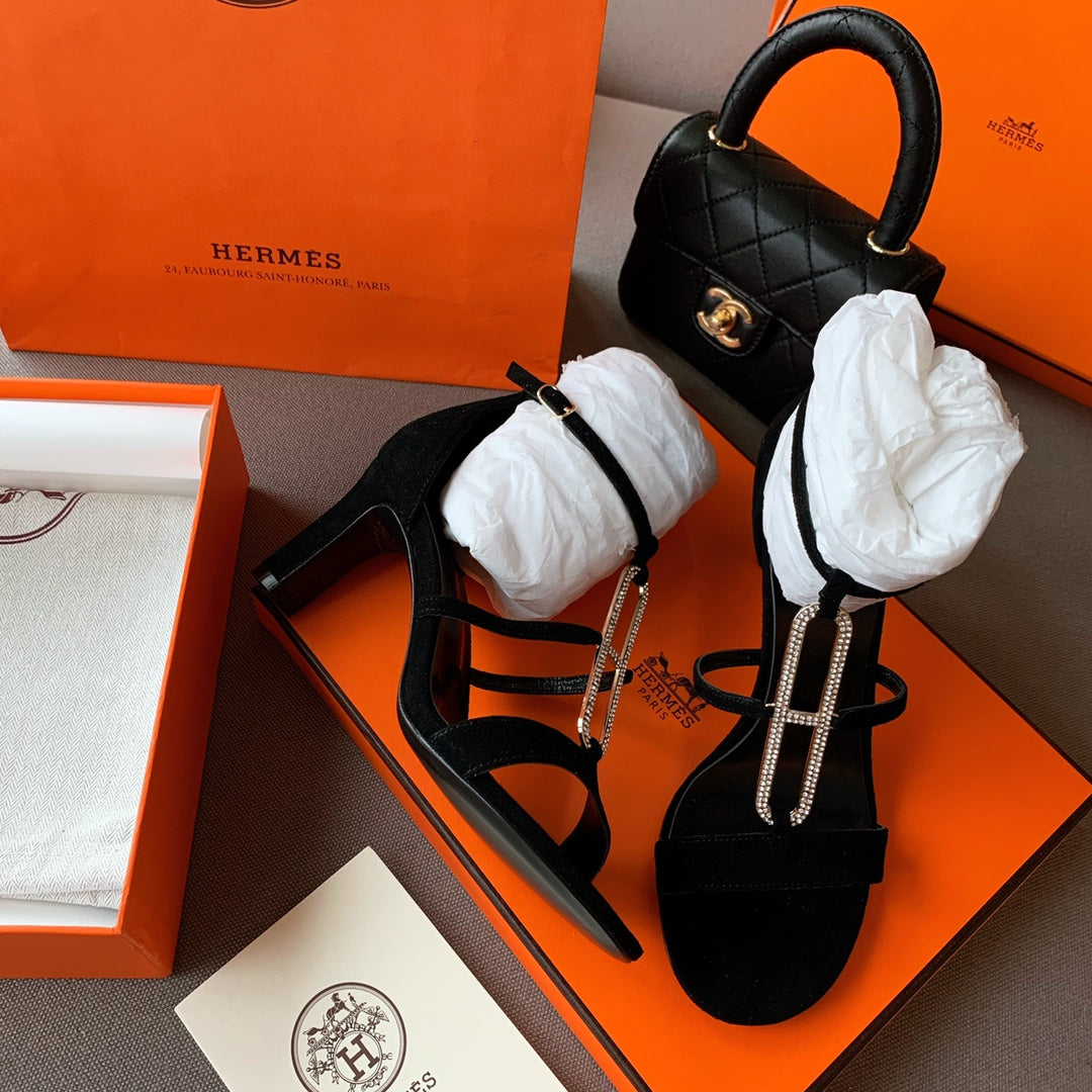 HM Icone Crystal Sandals 60mm Black Suede 546253