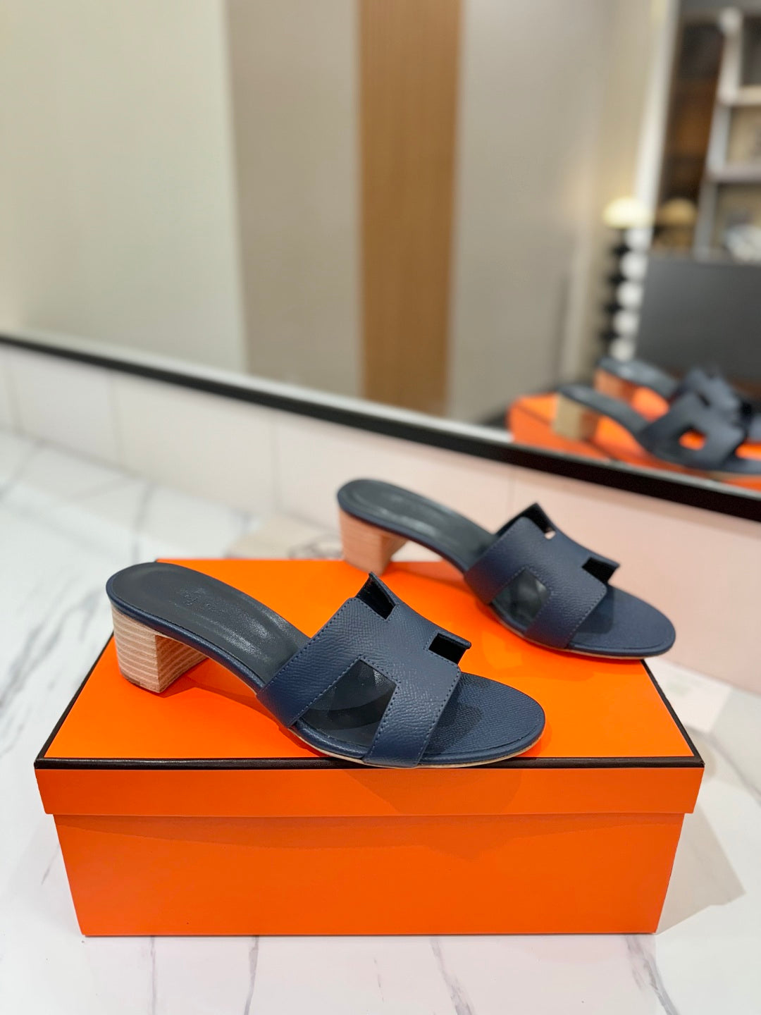 HM Oasis Sandals Navy Blue Cowhide 294848