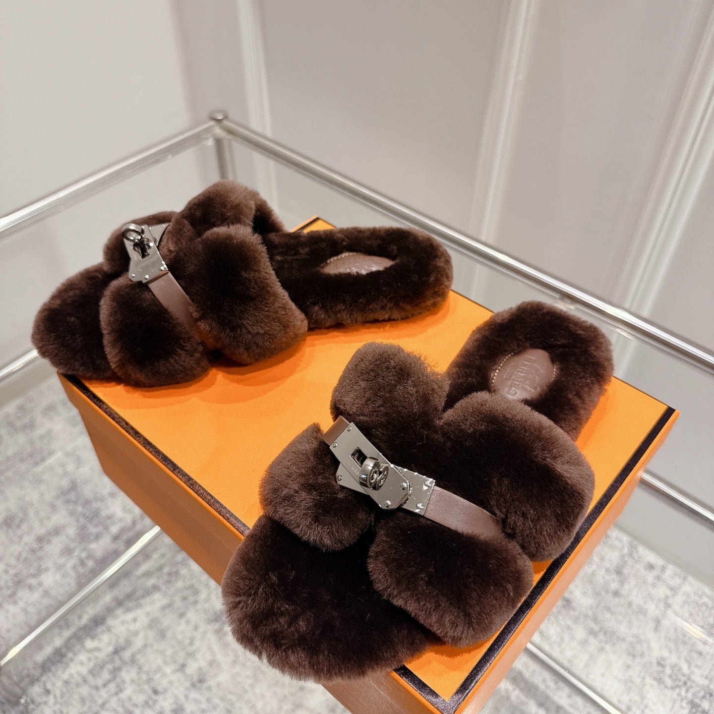 HM Oran slippers sliver buckle dark brown wool