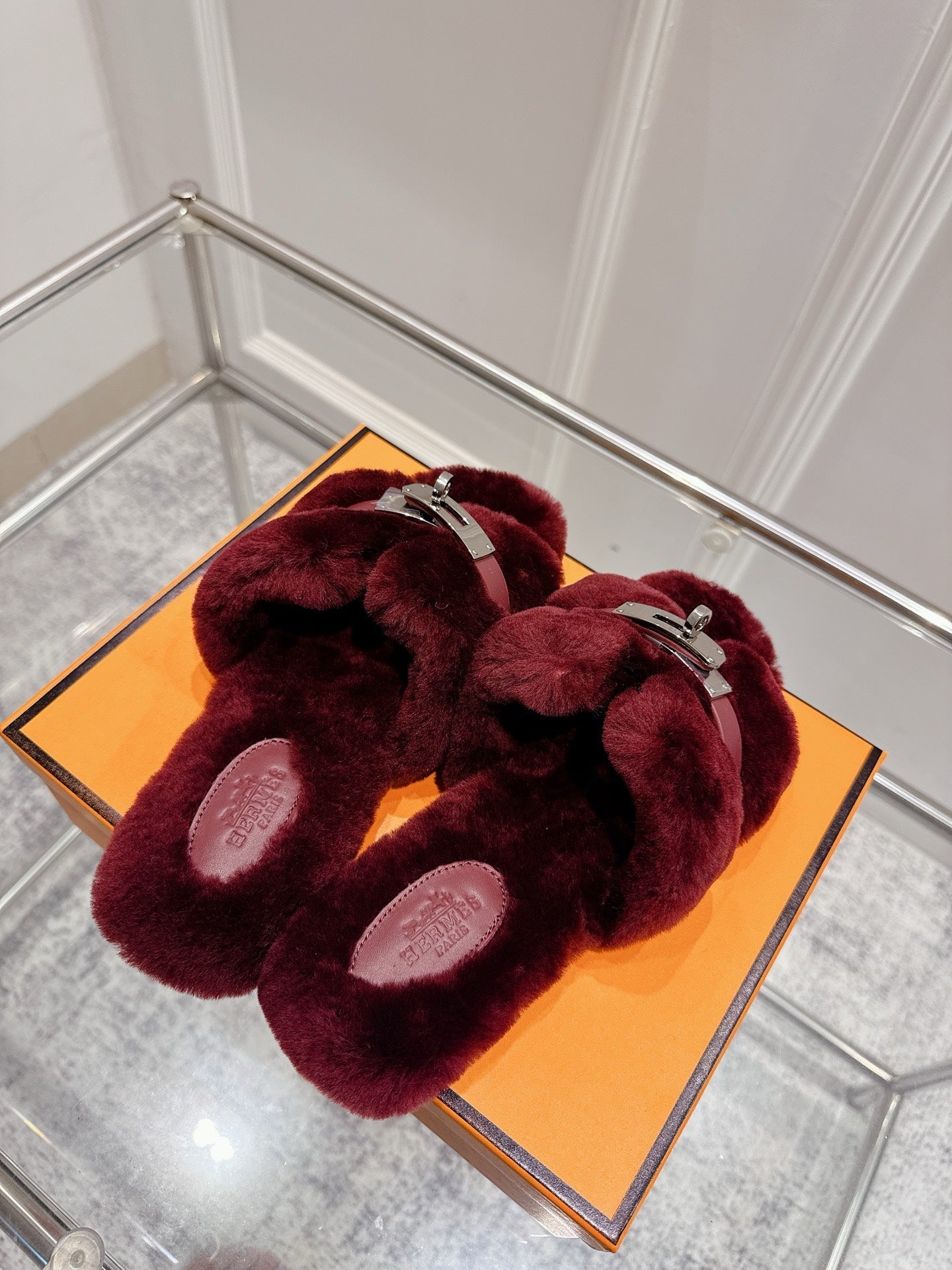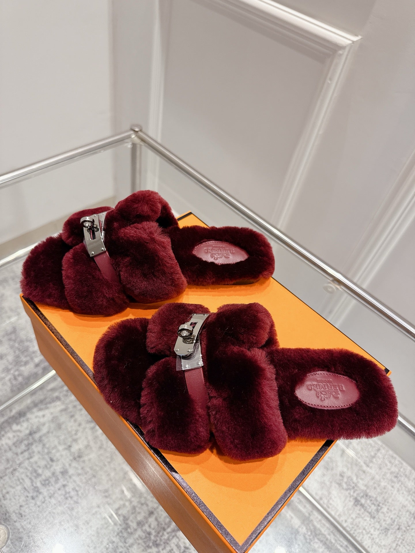 HM Oran slippers sliver buckle wine red wool