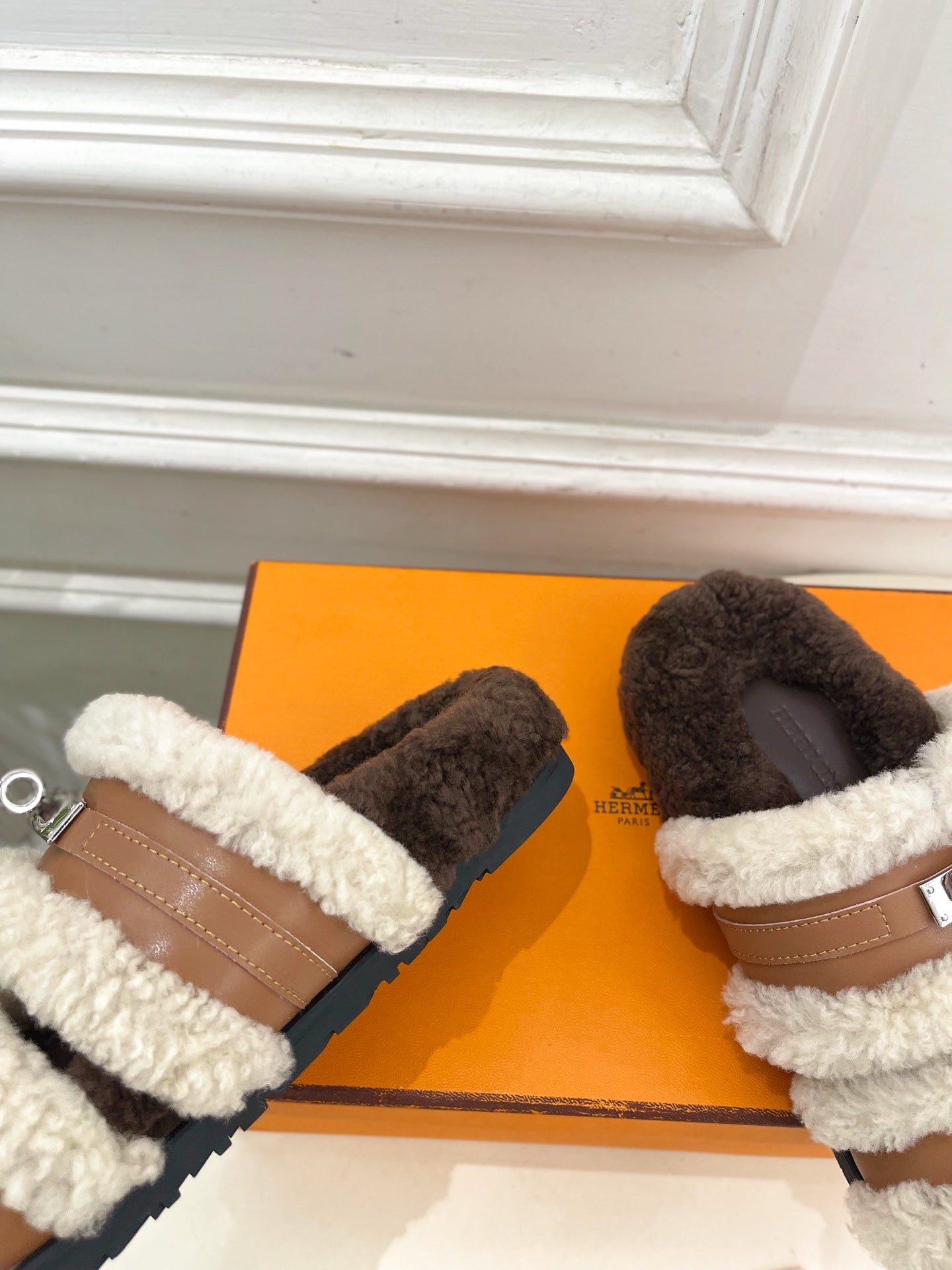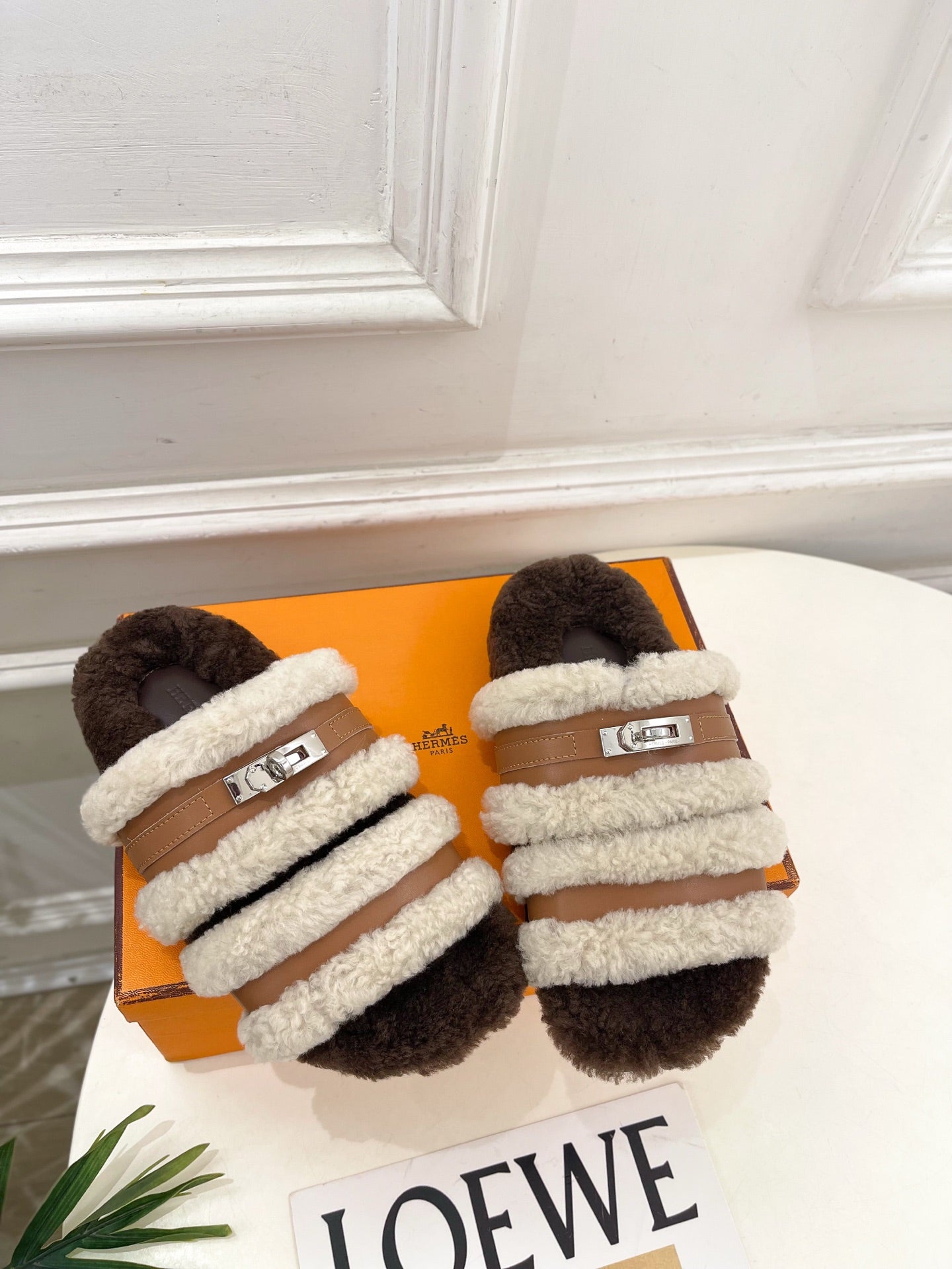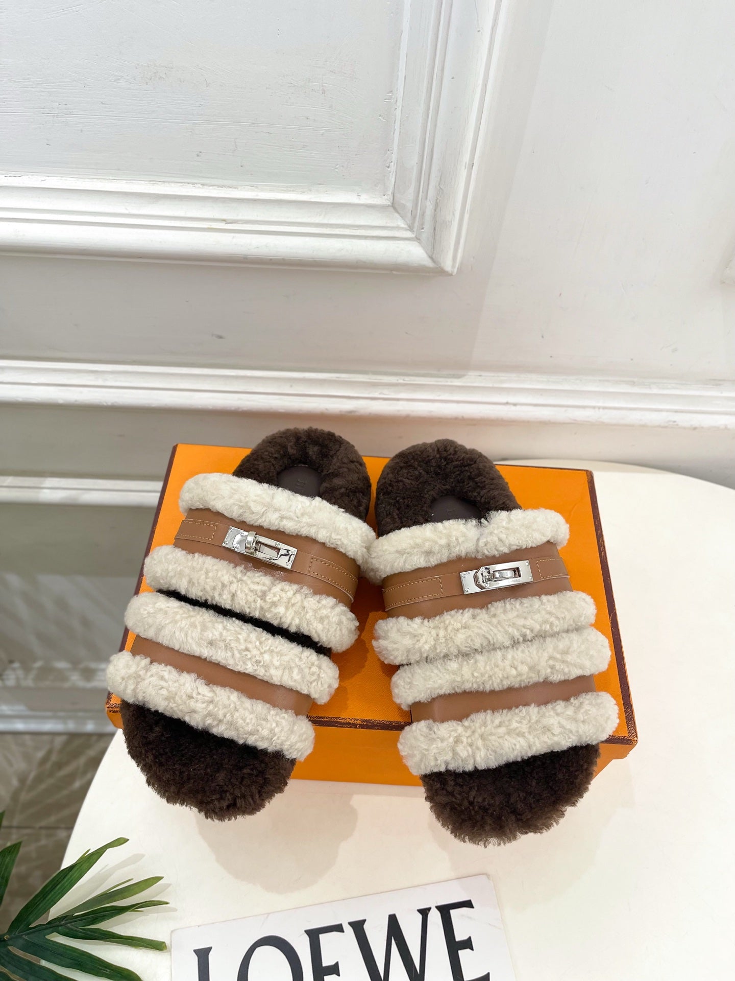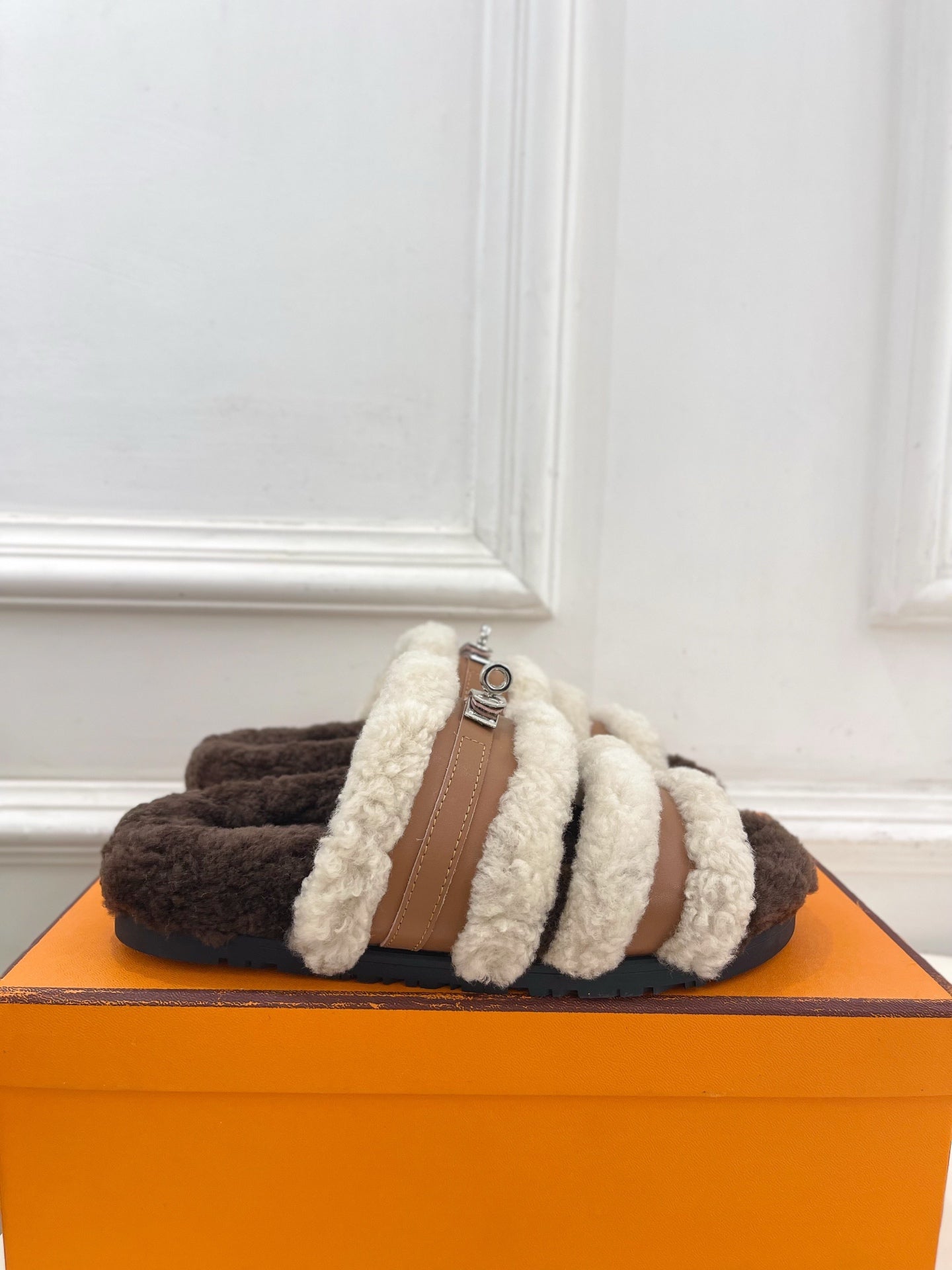 HM Slippers Classic Kelly Sliver Buckle Brown Wool 479617