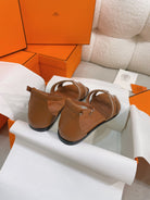 - Material: Sandal in Clafskin with straight cut edges, "H" cut-out detail and thin ankle strap.