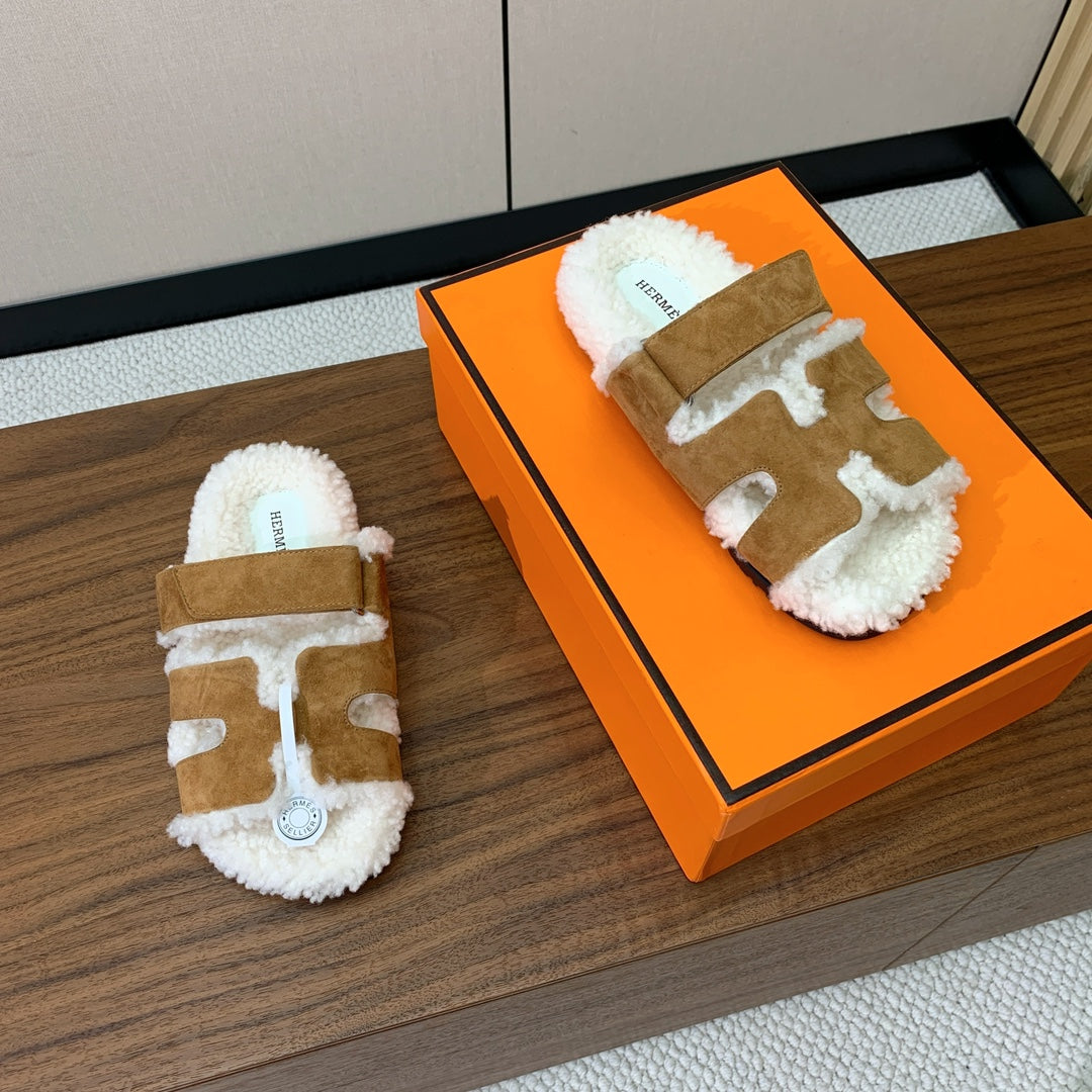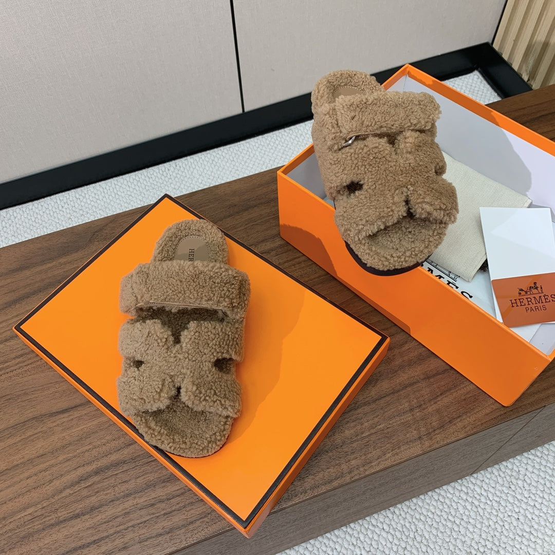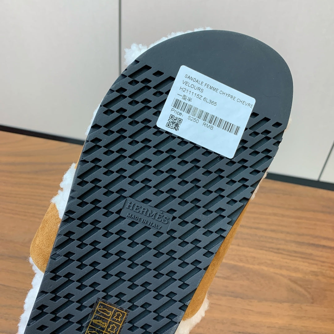 HM Chypre Sandal In Dark Beige Lamb Wool 984181