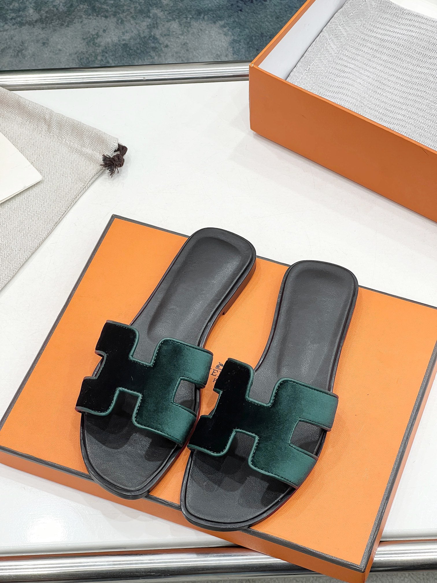 • Material: Sandal in velvet goatskin with iconic "H" cut-out.
