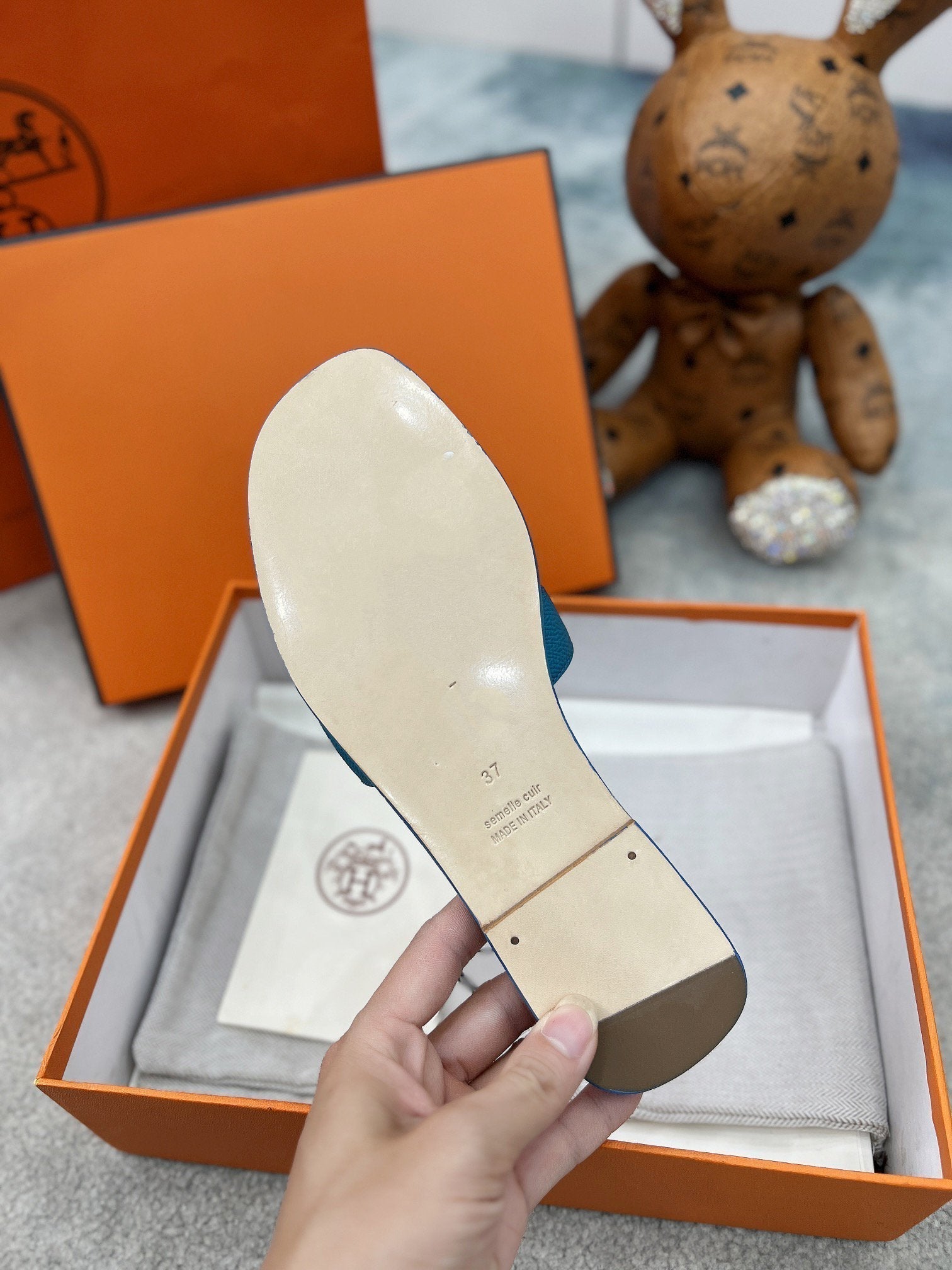 - Material: Sandal in epsom goatskin with iconic "H" cut-out.