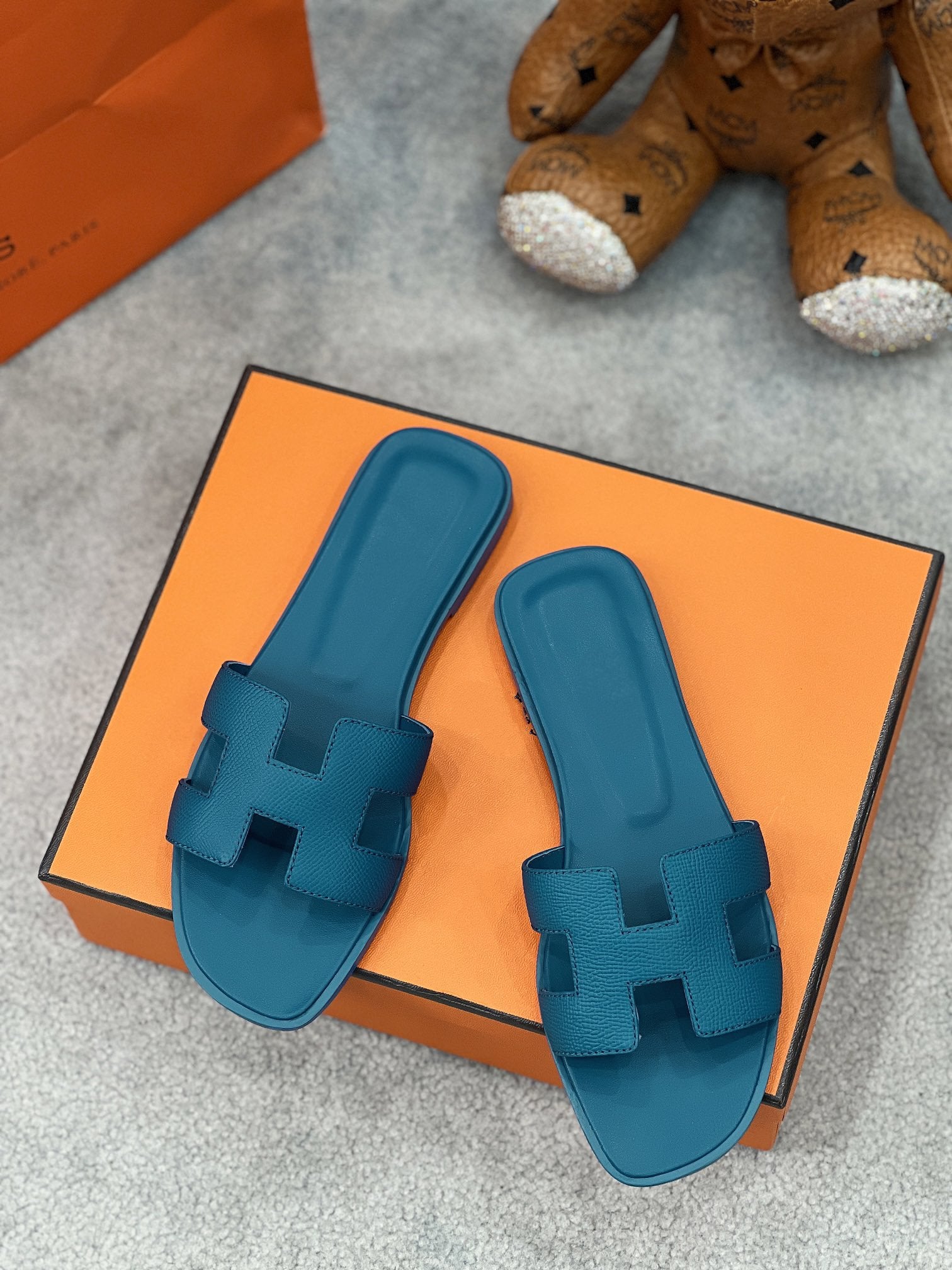 0ran sandal teal blue epsom goatskin