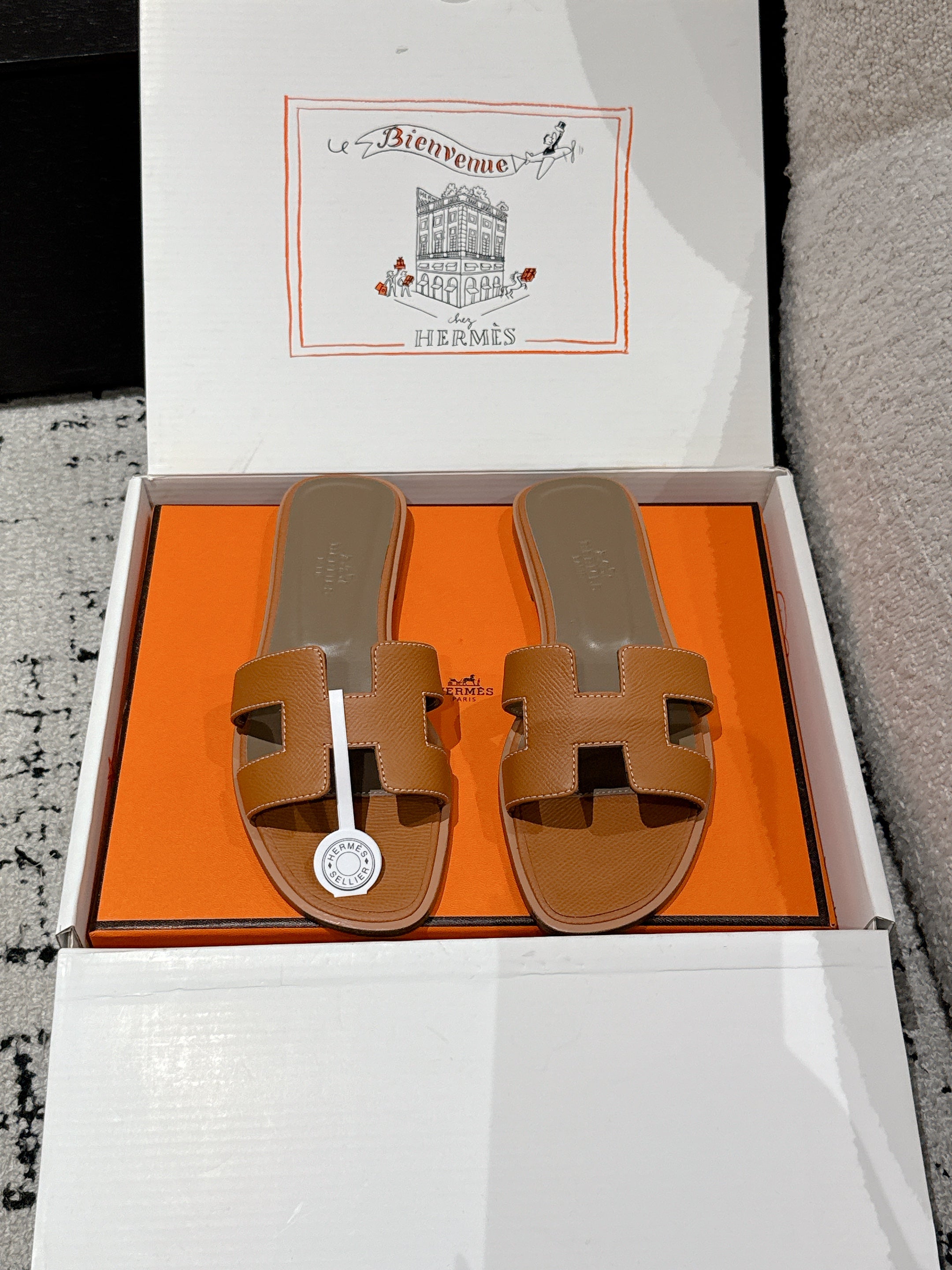 HM 25 Oran Sandal Gold Epsom Etoupe Calfskin