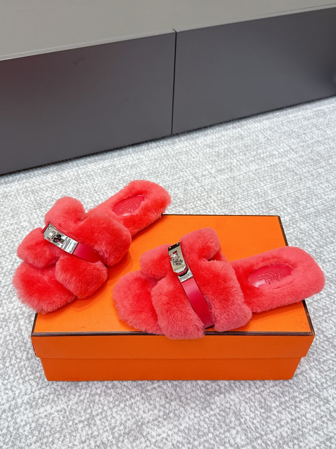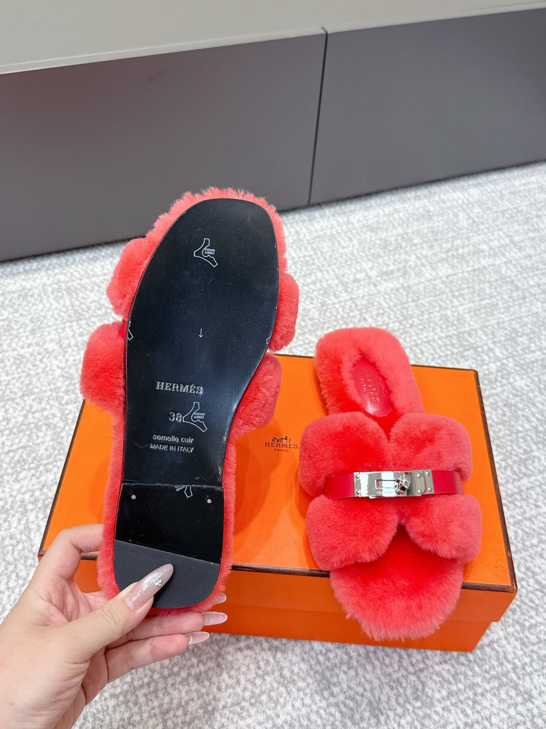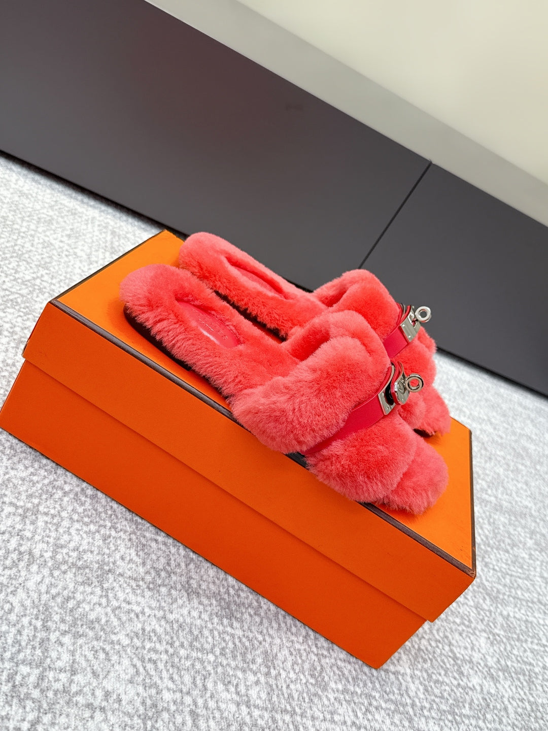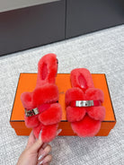 HM 25s H Shaped Slipper with Buckle Red Shearling 462198