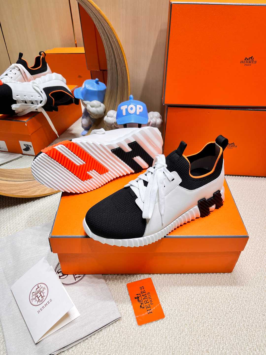 HM Depart slip-on Sneaker White and Black Knitted fabric and Calfskin 206329