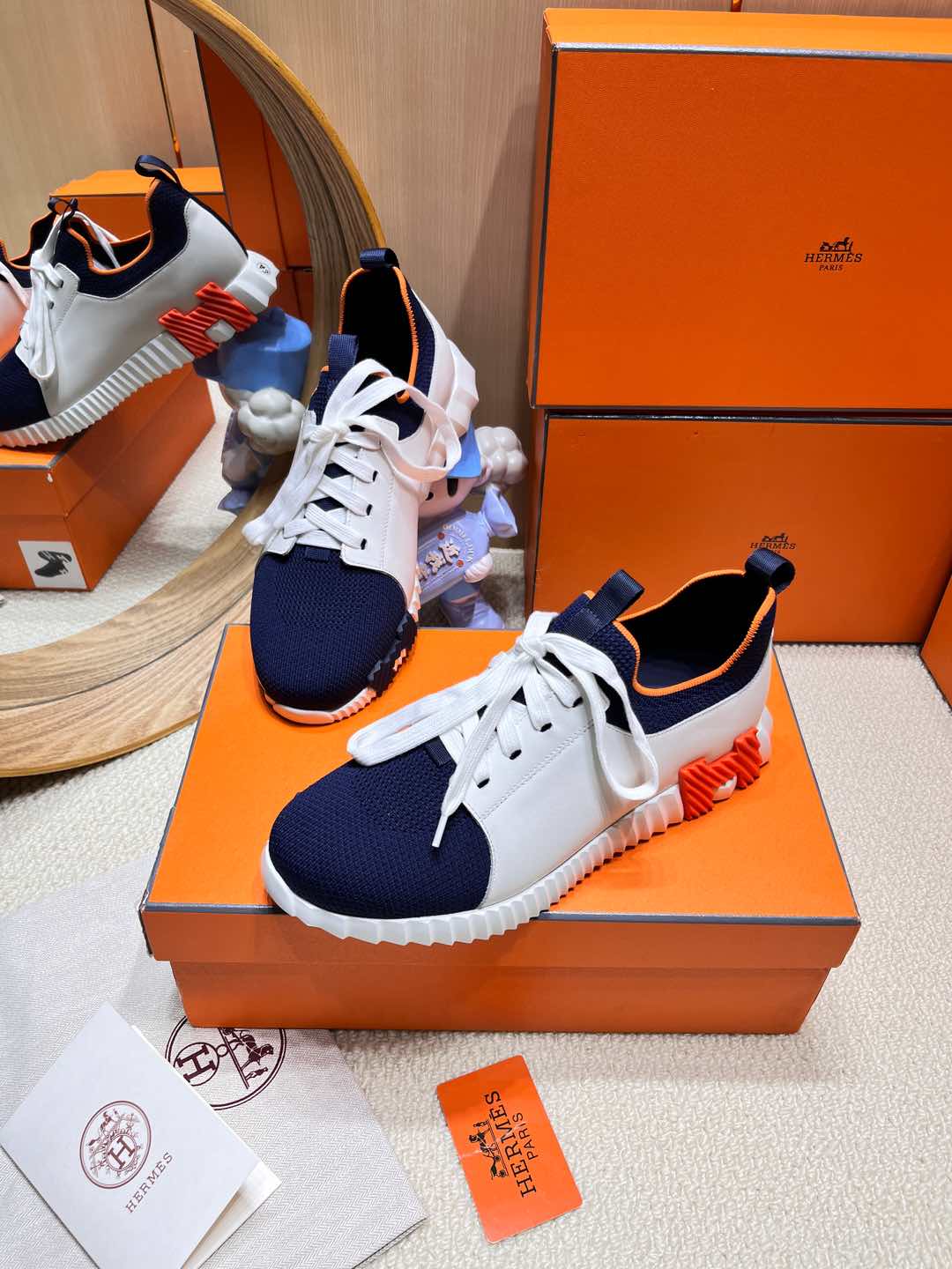 HM Depart slip-on Sneaker White mix Navy blue Knitted fabric and Calfskin 206317
