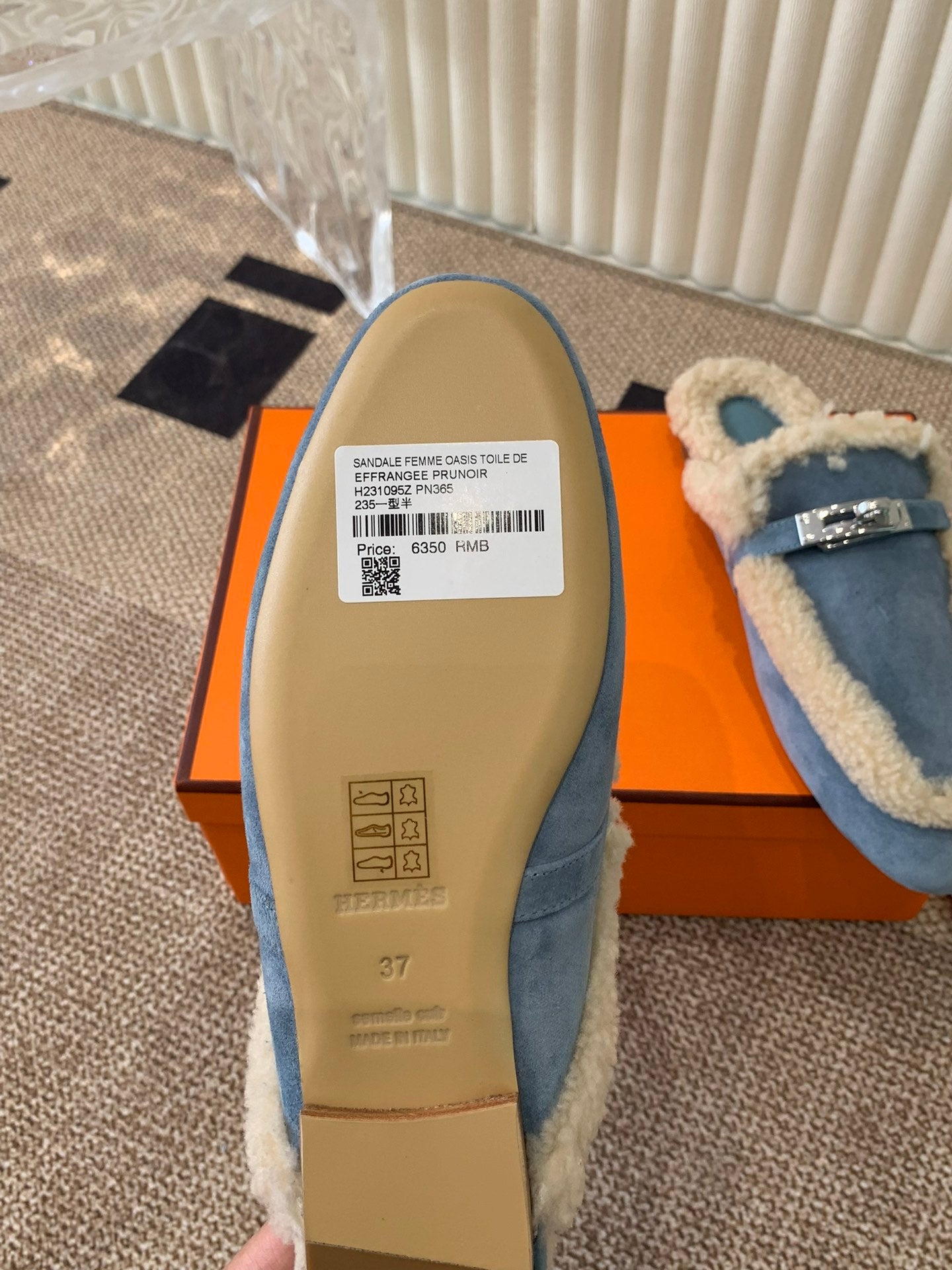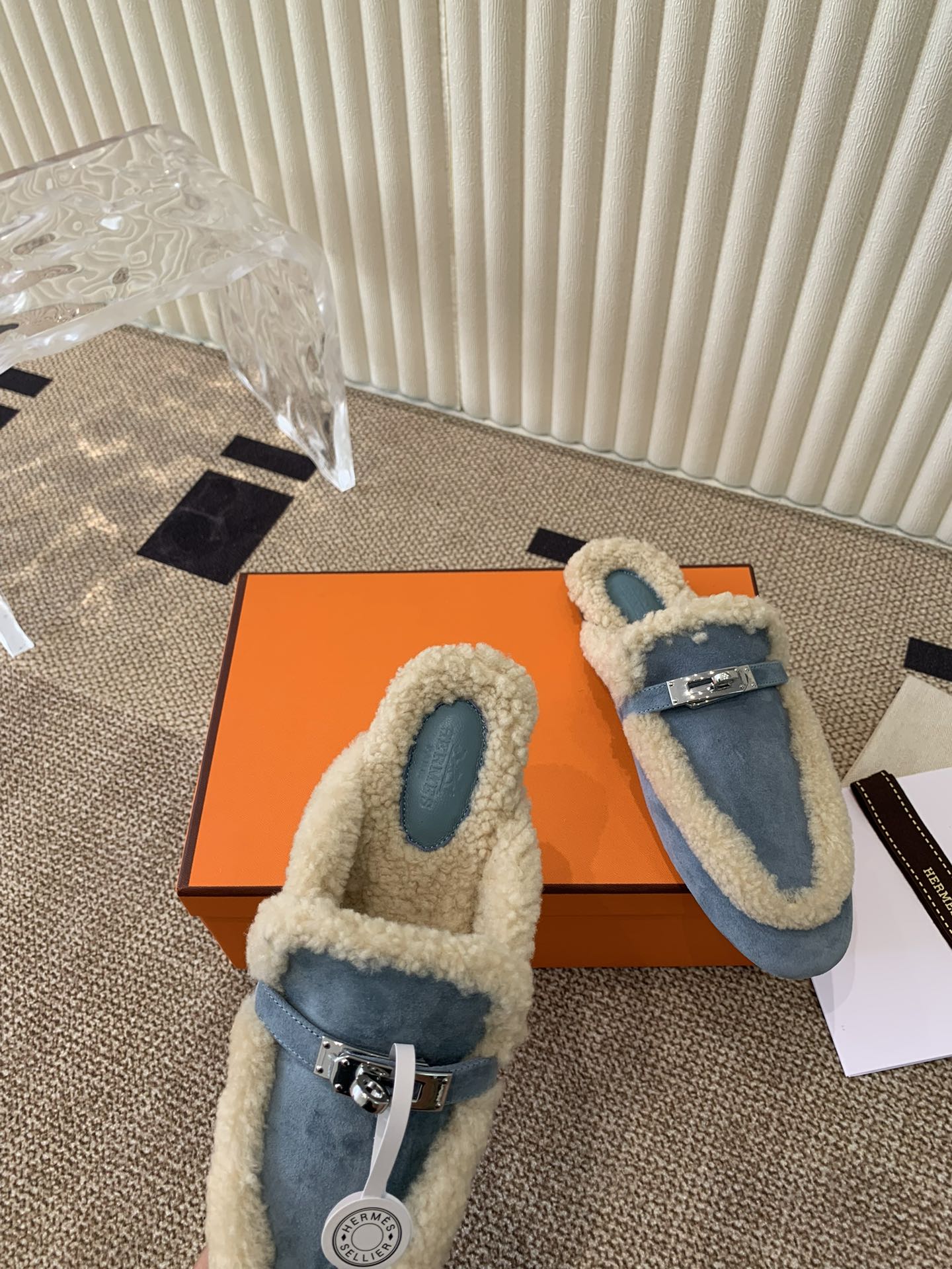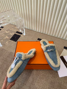 HM Oz Mule In Dark Pastel Blue Suede Lined With Wool Fleece 113199