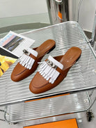 OZ MULE CARAMEL MIX FRINGED WHITE CALFSKIN