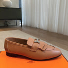 Royal Loafer Beige Perlino Calfskin With Fringe Detail And Silver Signature Buckle 509417