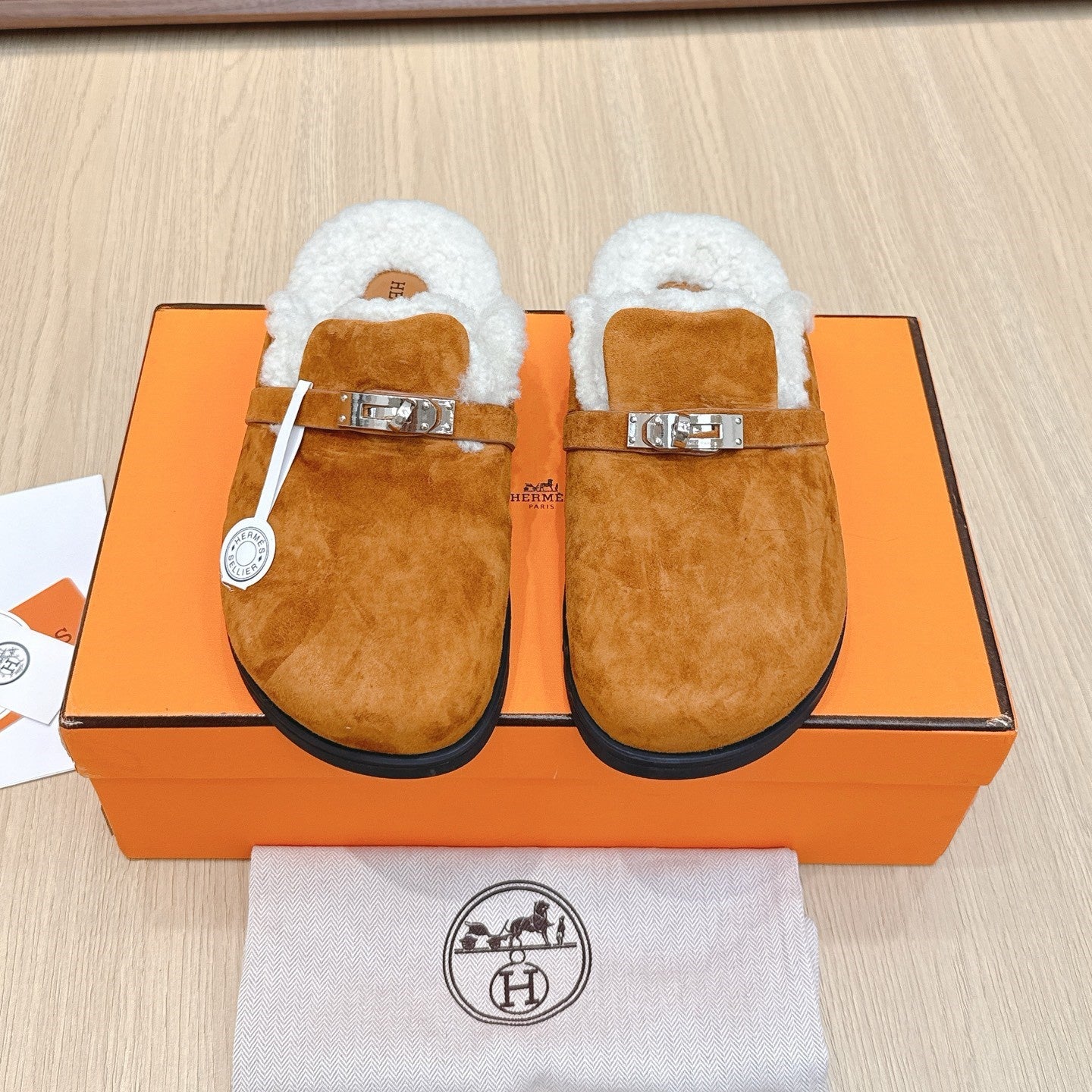 HM Kelly slippers Brown Cowhide Suede Fur 462203