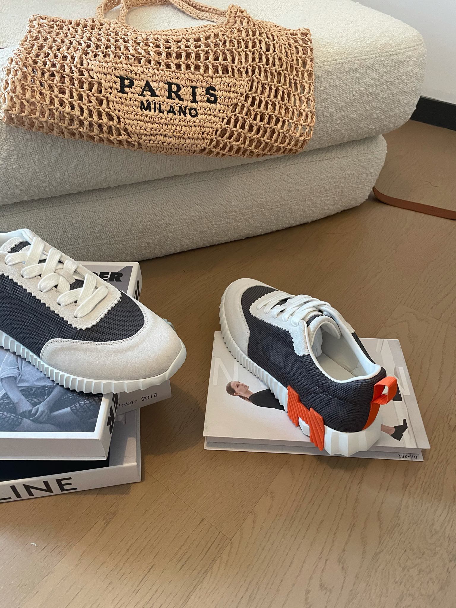 HM Bouncing 35 Sneakers Black Canvas White Suede Goatskin H Seafoam Orange