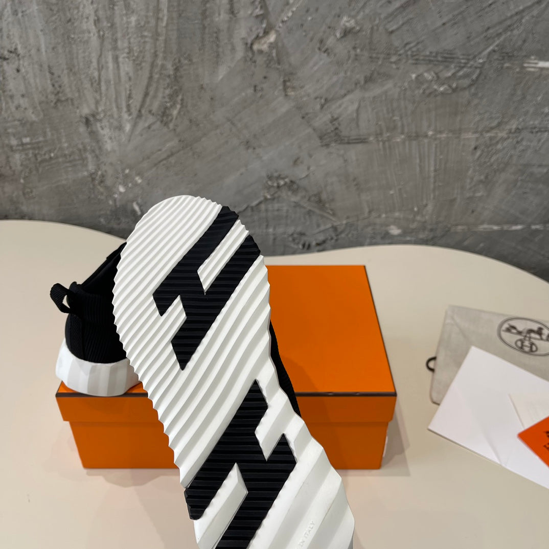 HM Depart slip-on Sneaker White Logo Black Knitted fabric and Calfskin 206335