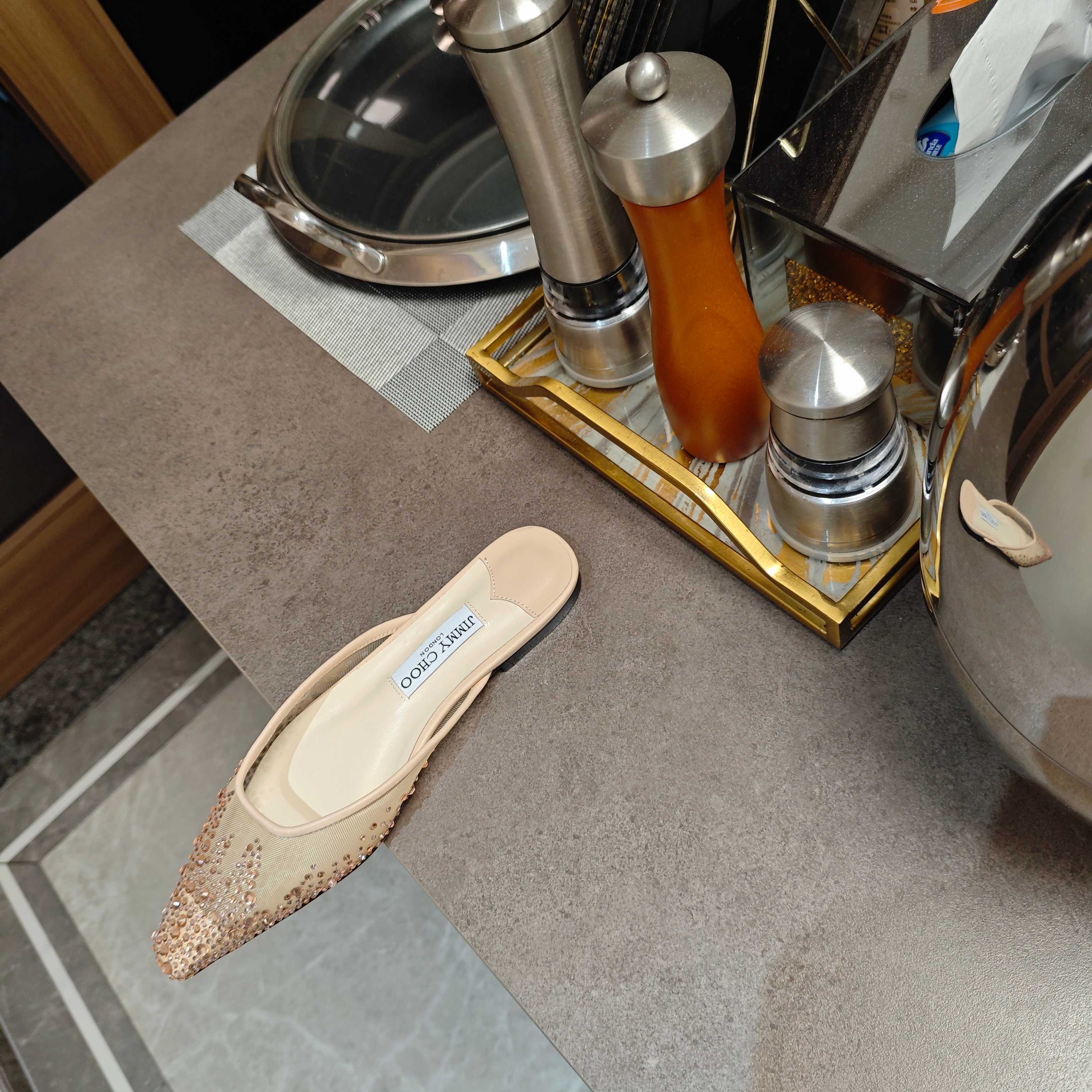 Jimmy 25 Mule Flats Cream Mesh Gauze 240058