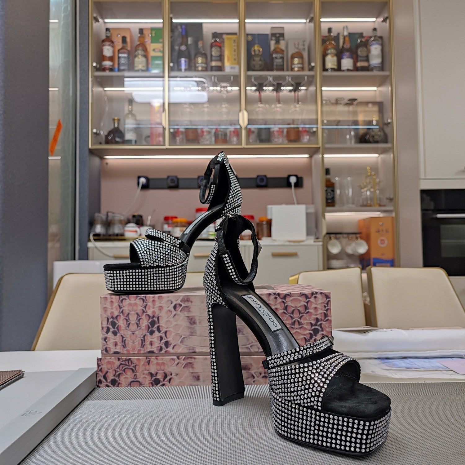 Jimmy 25 Platform Sandal Heels Black Silk Satin 240006