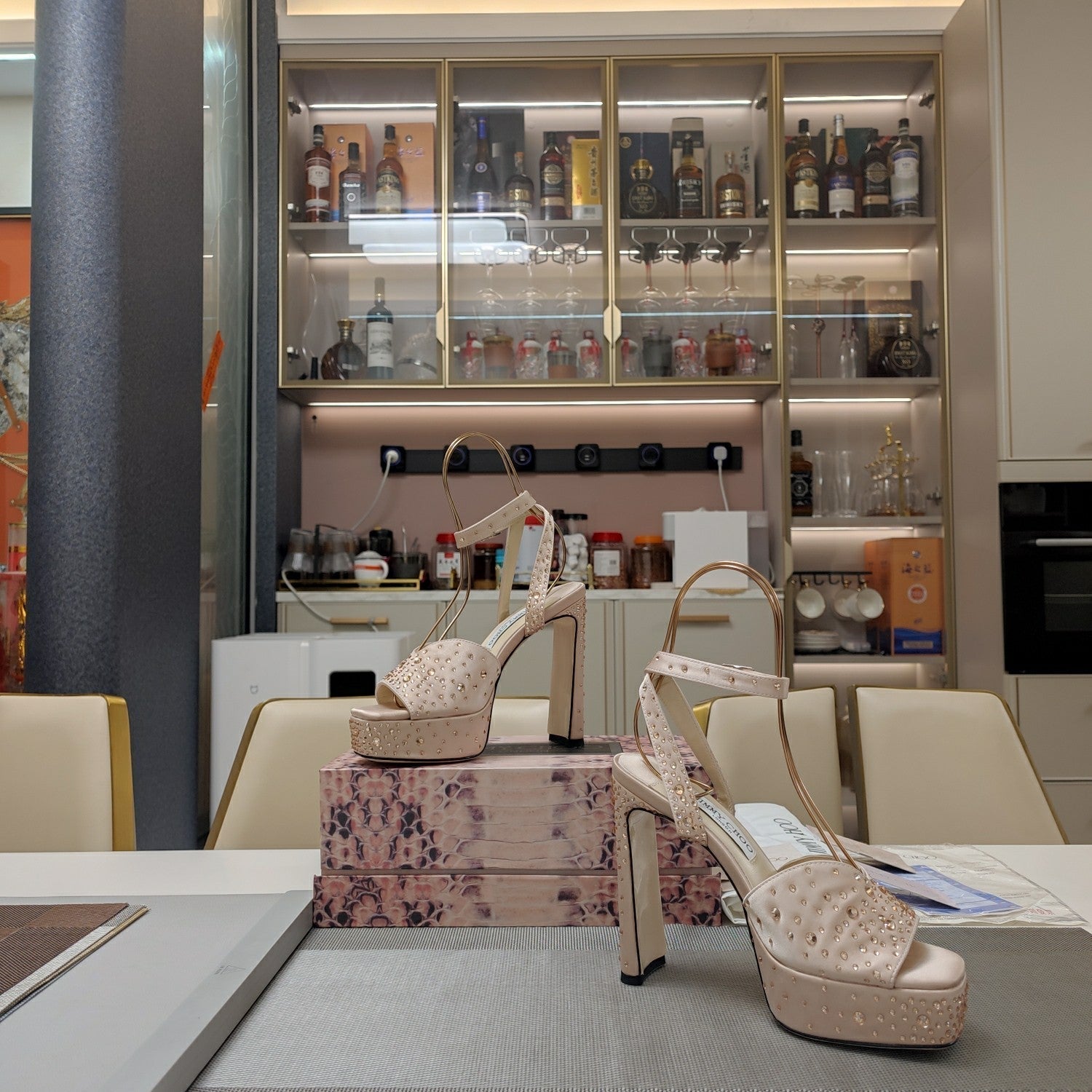Jimmy 25 Platform Sandal Heels Lady Pink Silk Satin 240012