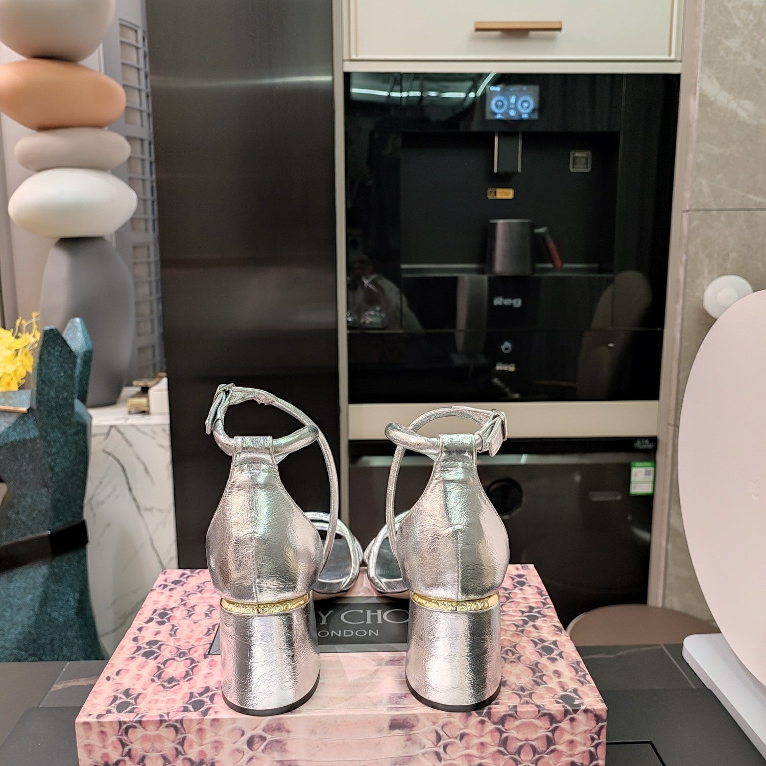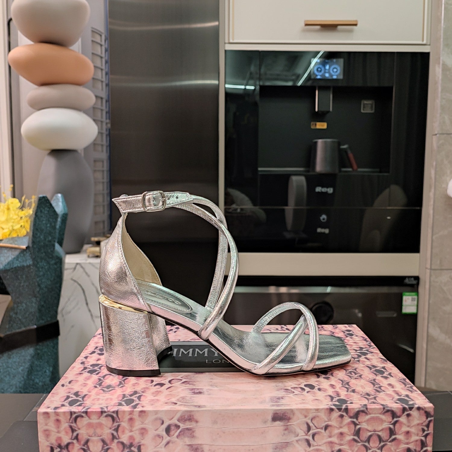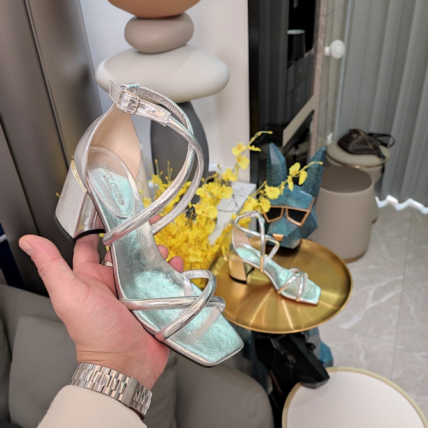 Jimmy 25 Sandal Heels Silver Cowhide 240089