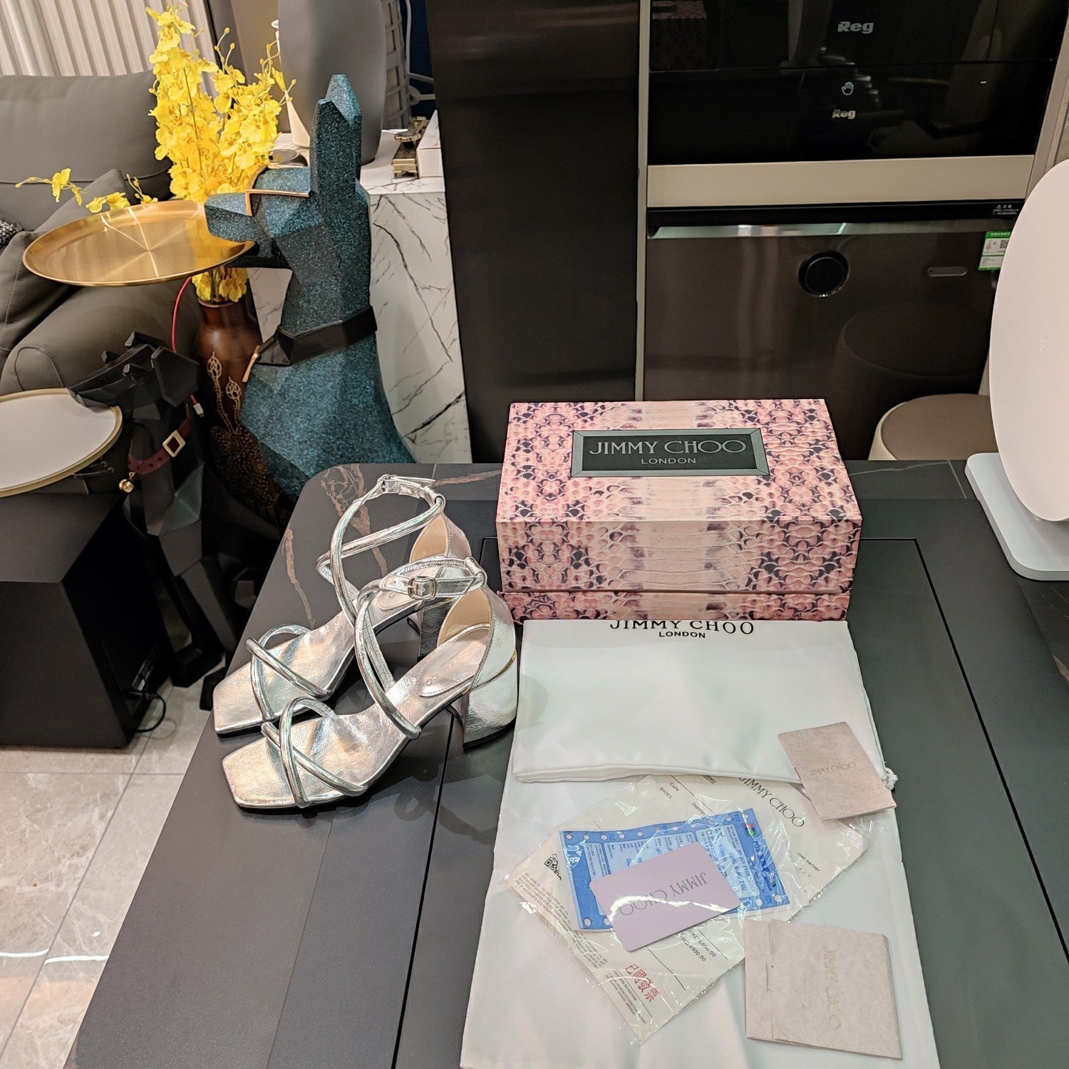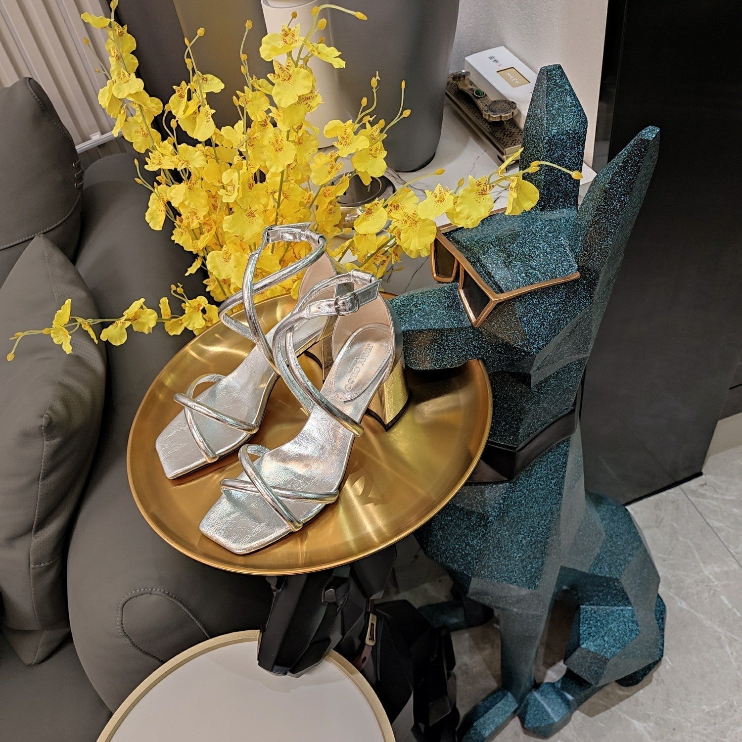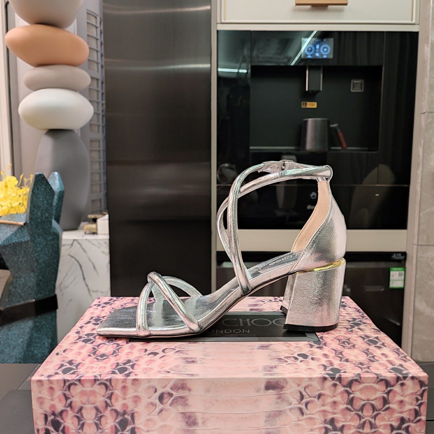 Jimmy 25 Sandal Heels Silver Cowhide 240089